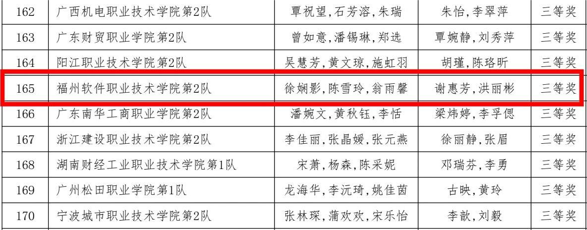 10月20日,由金砖国家工商理事会技能发展工作组、“一带一路”暨金砖国家技能发展国际联盟、教育部中外人文交流中心联合举办的“一带一路”暨金砖国家技能发展与技术创新大赛之数字人力资源管理技能赛项(高职组)区域赛圆满落幕。我院由李佳肴、谢烨、肖雅婧三位同学(指导老师:陈晓芬、李文婷)组成的代表队,荣获二等奖;由徐娴影、陈雪玲、翁雨馨三位同学(指导老师:谢惠芳、洪丽彬)组成的代表队,荣获三等奖。