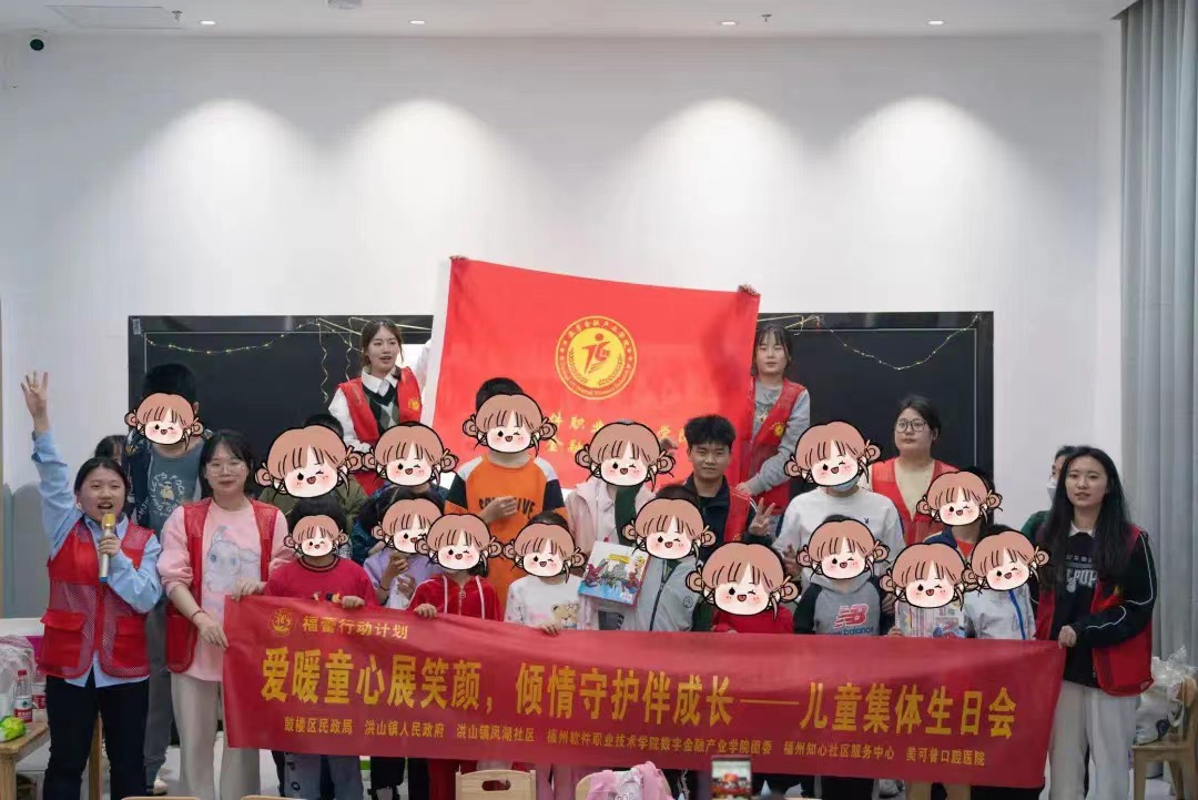 为切实做好志愿服务工作,发挥党员干部的先锋模范带头作用,深化社区活动,充分发挥青年志愿者在服务青少年健康成长中的独特优势,促进与心智障碍儿童交往交流交融。2023年4月22日,福州软件职业技术学院数字金融产业学院柯林逸炜老师带领预备党员及入党积极分子参加由鼓楼区民政局、洪山镇人民政府,洪山镇凤湖社区、美可普口腔、福州市知心社区服务中心在福州市鼓楼区洪山镇凤湖社区党群服务中心开展“爱暖童心展笑颜,倾情守护伴成长”集体生日会活动。