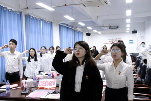 紧接着,由经济管理系党总支副书记周政超老师带领全体新老党员同志进行入党宣誓。