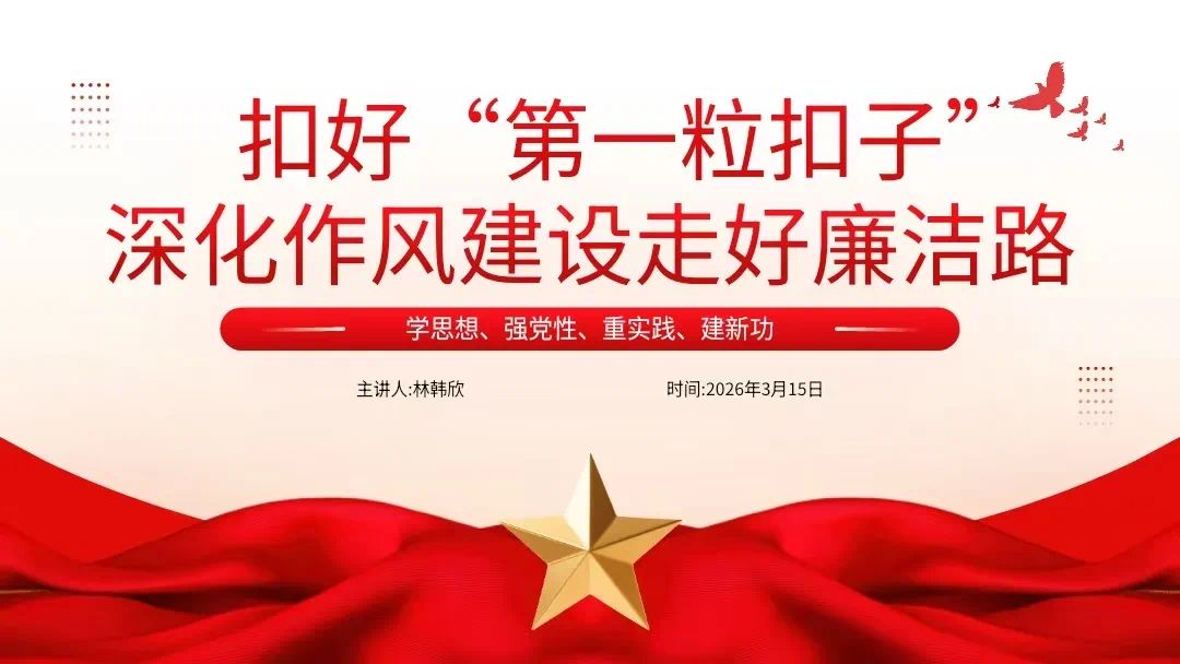 为引导青年学子深悟作风建设要求,扣好廉洁修身“第一粒扣子”,以史为鉴明廉义,聚焦担当强修为。2026年3月15日,数字金融产业学院学生党支部组织开展支部党员微党课第十九讲——《扣好“第一粒扣子”,深化作风建设走好廉洁路》。本次微党课采用线上线下相结合的形式,由学生党员林韩欣同志分享,全体学生党员及入党积极分子参与学习。