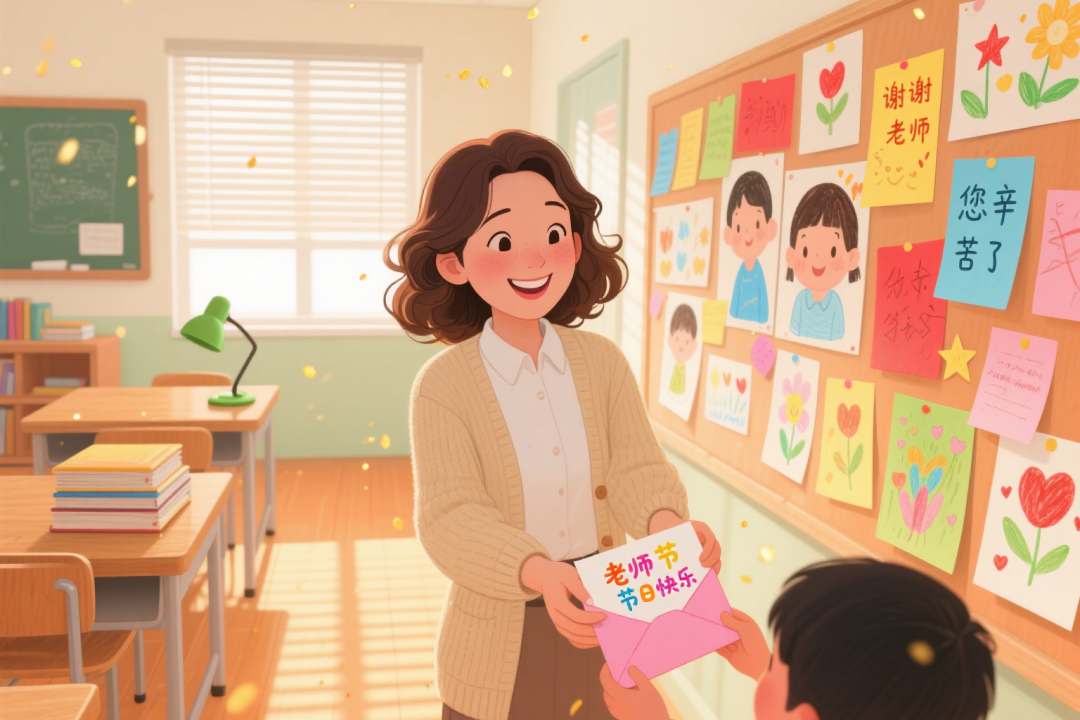 01“一张贺卡载心意, 满墙温情谢师恩”
