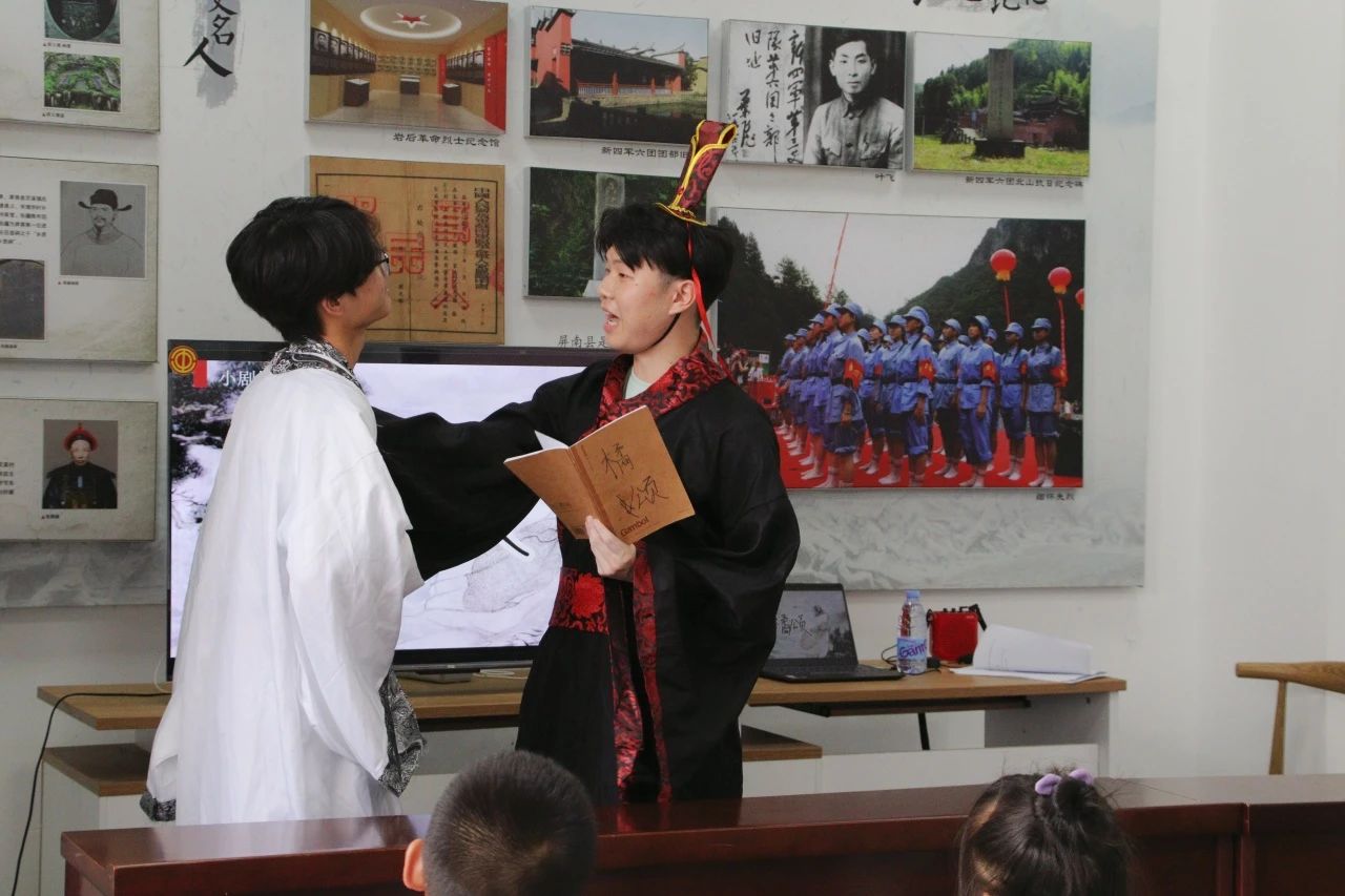 实践队员通过小剧场的演绎将《典籍里的中国》的精彩片段再现,让“沉睡”于典籍里的文字“活”起来。以古今穿越、时空对话的形式,对典籍里蕴含的思想精华和传奇故事进行情景化呈现、通俗化解读,用典籍破译文化密码,增强文化自信。