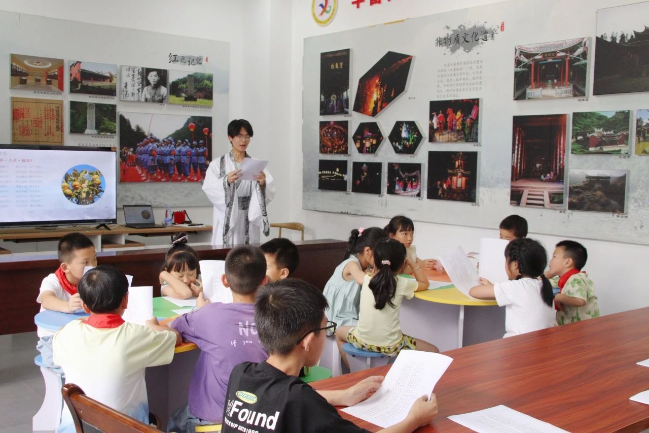 为深入学习贯彻习近平总书记在文化传承发展座谈会上发表重要讲话,全面深入了解中华文明的历史,有效推动中华优秀传统文化创造性转化、创新性发展,更有力地推进中国特色社会主义文化建设,建设中华民族现代文明,数字金融产业学院薪火暑期社会实践服务队在屏南县双溪镇新时代文明实践所开展“诵中华经典,做国学少年”经典诵读活动。