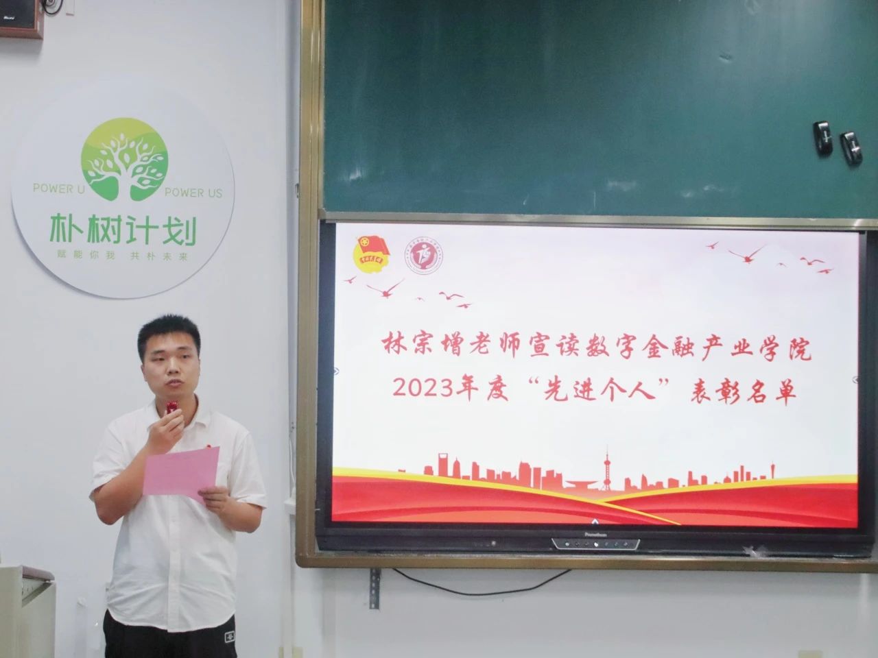 团委指导老师林宗增宣读数字金融产业学院2023年度“优秀学生干部”“优秀学生干事”表彰名单,党总支书记周政超老师与团委书记叶雅姿老师分别为获奖学生颁发荣誉证书,感谢各位同学在这一年来对学院各项团学工作的支持与付出。