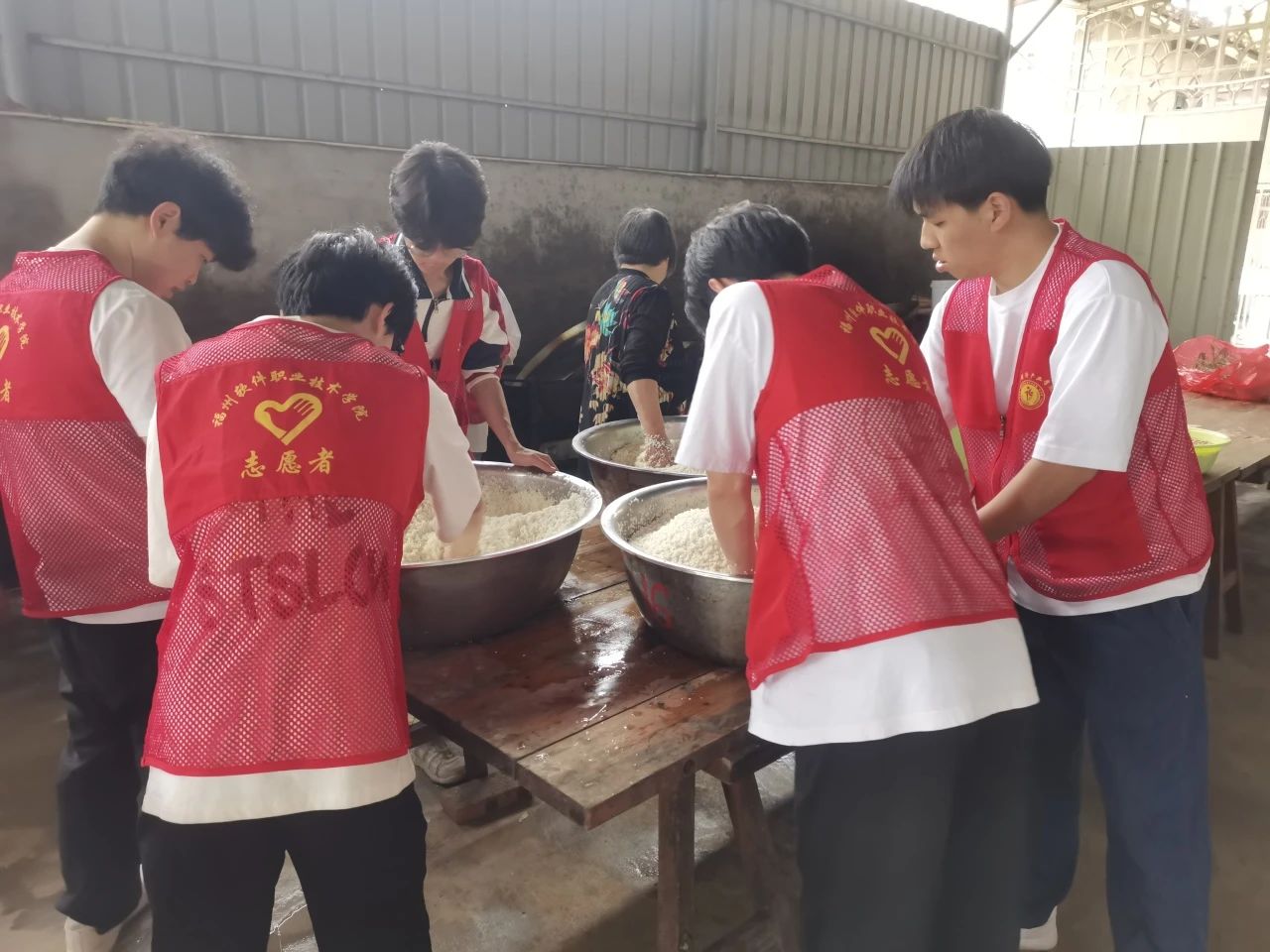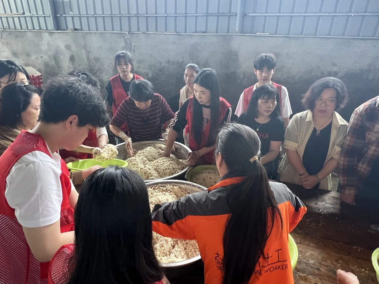 粽叶飘香迎端午 ,夏日清风诗意浓。志愿者们来到社区与社区工作者们一起分工合作,在现场工作人员的指导下将大米、花生等包粽子的所有材料进行清洗并且分装入盆,并把包粽子所需粽绳、剪刀等用具整齐摆放在桌子上,确保活动能够顺利举行。