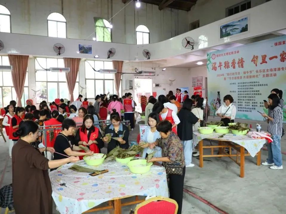 6月7日,由长乐区新时代文明实践中心、长乐区新时代文明实践志愿服务总队、区委文明办主办,漳港街道新时代文明实践所、关湖边社区新时代文明实践站、农商银行漳港支行、朝阳社会工作服务中心承办,屏洋村、洋边村、龙峰村、漳光社区、仙岐村、王朱村、路顶村、演屿村协办,福州软件职业技术学院数字金融产业学院、滨海水务有限公司共建的“端午粽香情,邻里一家亲”2024年“我们的节日·端午节”长乐区主场漳港专场暨“节日感党恩 共话新时代”主题活动在关湖边社区礼堂广场举办。该活动旨在传承和弘扬中华优秀传统节日文化,感受端午节传统文化的独特魅力,促进社区文化建设。