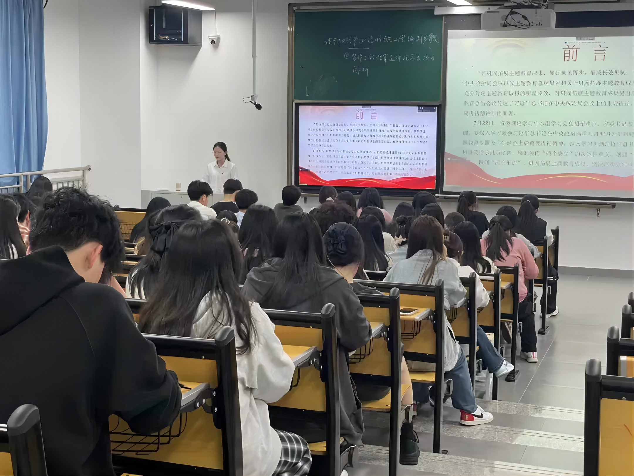 最后,林梦呓同志呼吁学生党员和入党积极分子们要更加紧密地团结,坚定信心、开拓进取、勇于改革创新,树立好“全心全意为人民服务”的根本宗旨。使命重在担当,奋斗创造未来,作为学生党员与入党积极分子的我们要深化拓展“深学争优、敢为争先、实干争效”行动,为全方位推进高质量发展凝聚磅礴力量。