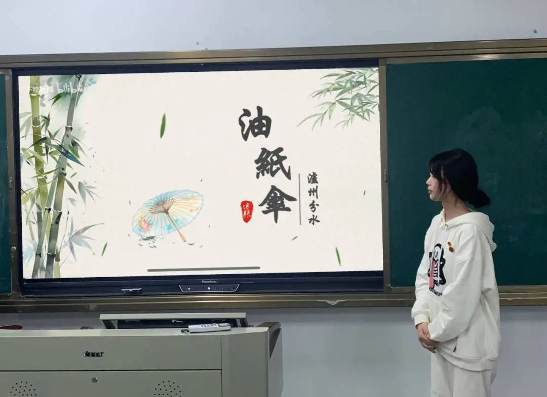活动伊始,团支书黄阿珍向同学们讲解了油纸伞的起源、制作方法,简短的视频让同学们对油纸伞有所了解。听完讲解同学们充分发挥自己的想象力,开始动手在雪白的伞面上创作,有的画了一簇簇风骨傲然的梅花,有的则描上了一道道斑斓的彩虹,水墨浸染,争奇斗艳,用明艳斑斓的色彩勾勒出活泼或宁静的画面,以“画”现美,以“伞”倡礼。
