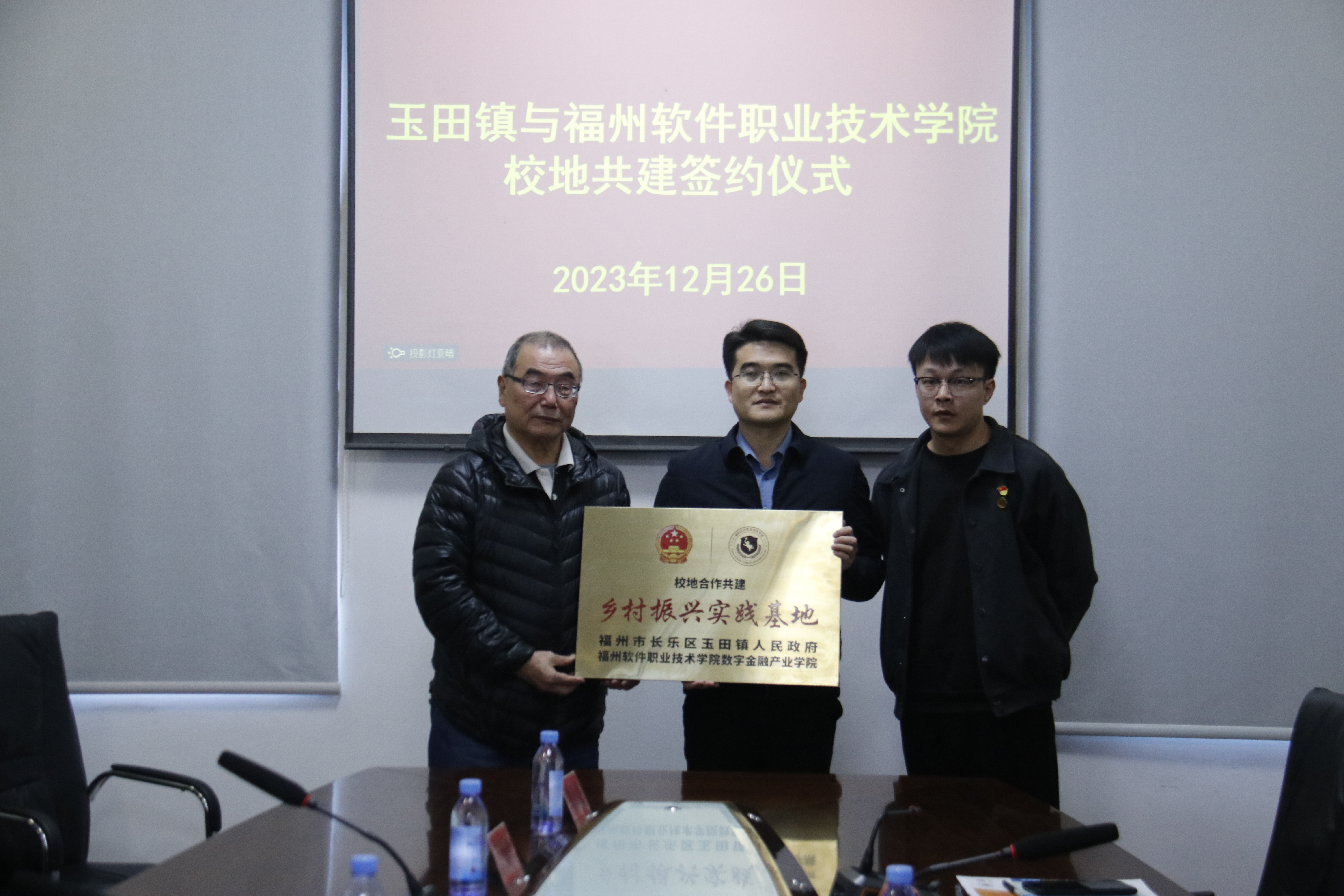 党的二十大报告强调,“全面推进乡村振兴”,并提出加快建设农业强国,扎实推动乡村产业、人才、文化、生态、组织振兴。为进一步深化校地合作,助力乡村人才培养,持续推进“数字乡村”建设。2023年12月26日上午,福州软件职业技术学院与玉田镇人民政府在玉田镇政府举行校地合作签约暨基地授牌仪式。执行校长俞发仁、校党委副书记林艺勇、校长助理柯建琳及数字金融产业学院党政负责同志出席会议。