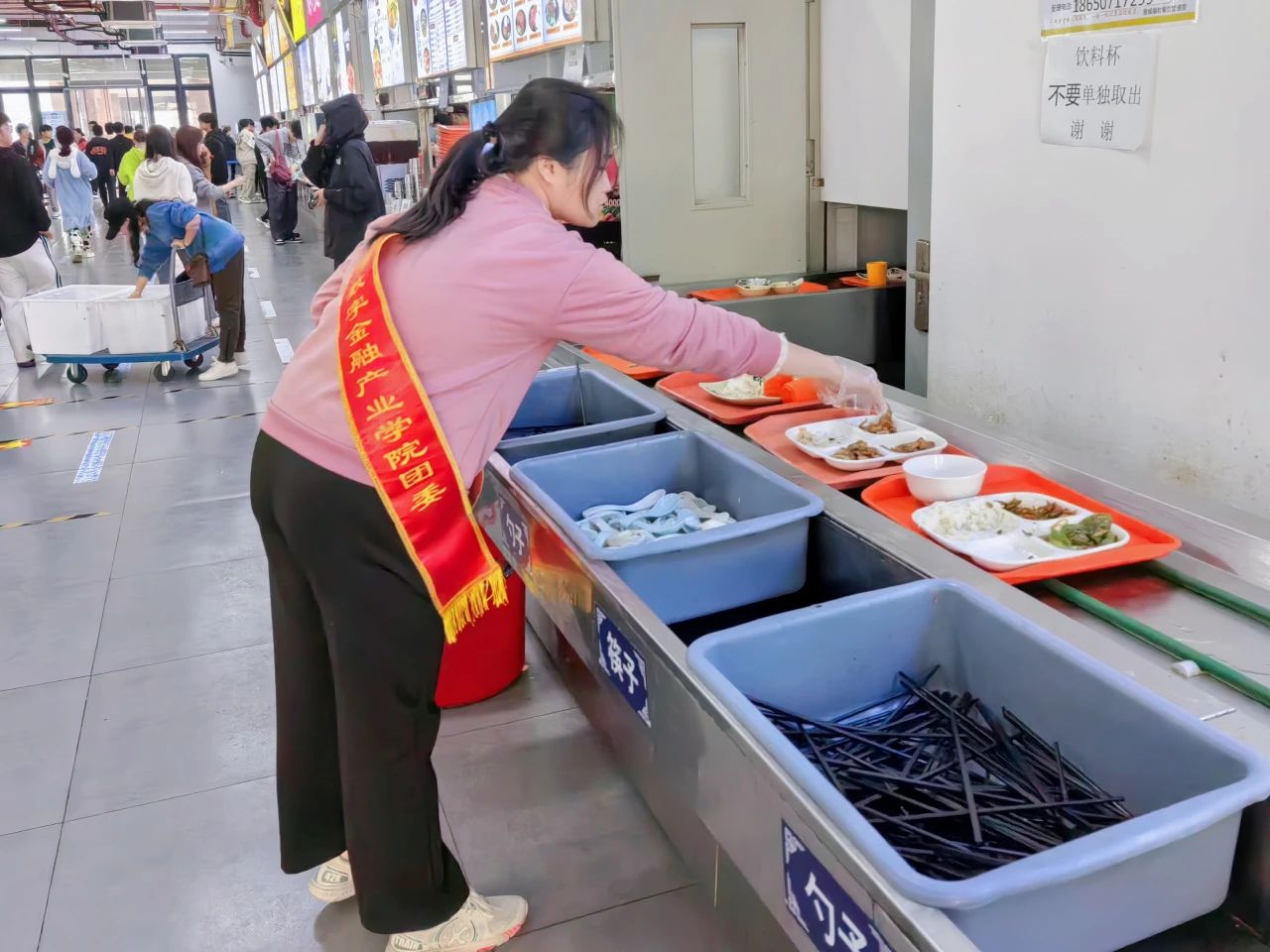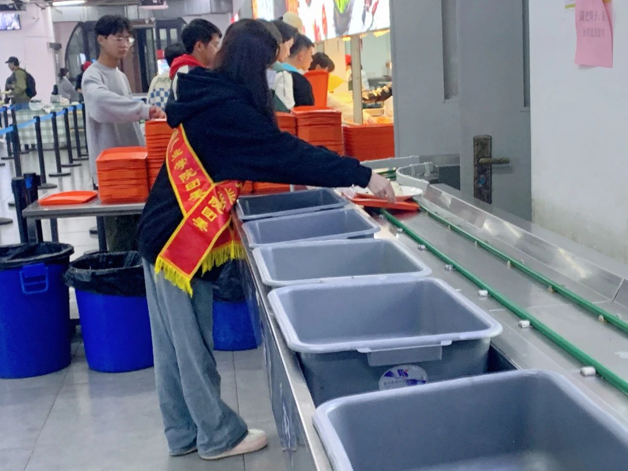 食堂,是人们日常生活中不可或缺的一部分,它不仅为我们提供了美味的食物,更是一个充满温暖和欢乐的地方。作为一名食堂督导志愿者,我深感自己的责任重大。我的职责是协助食堂工作人员为大家提供更好的服务,确保每一个人都能在这里享受到舒适的用餐体验。食堂志愿者的工作看似简单,但却非常重要。他们要负责食堂的清洁和卫生工作,确保每一个角落都干净整洁;他们用自己的付出传递着什么是正能量。——23级金融服务与管理2班林鸿春