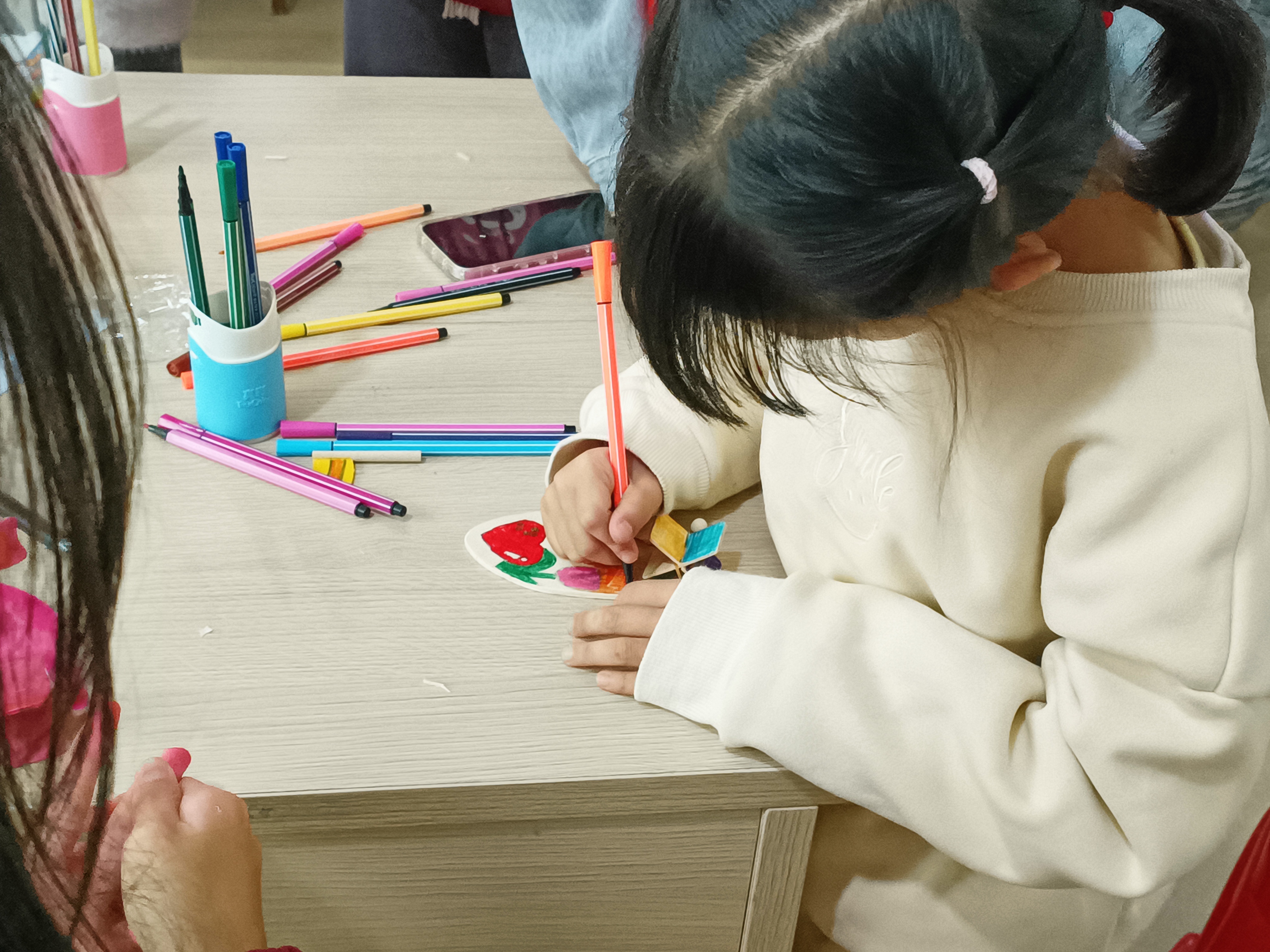 志愿者为小朋友们介绍制作帆船的过程,听完志愿者的讲解,小朋友们迫不及待的投入帆船制作,他们拿起材料经过一番观察、探索下,拿出水彩笔在木块上画出了自己喜欢的图案,认真组装起了“帆船”。经过大家的共同努力,一艘艘精美的帆船便在小朋友们的巧手中诞生,看着自己亲手完成的劳动成果,小朋友的脸上露出了满意的笑容。少年兴则国兴,少年强则国强。在实践活动中,将“红船精神”具象化、时代化、生活化,使小朋友在活动中潜移默化地了解中国共产党革命历史,传承红色基因,珍惜来之不易的幸福时光。