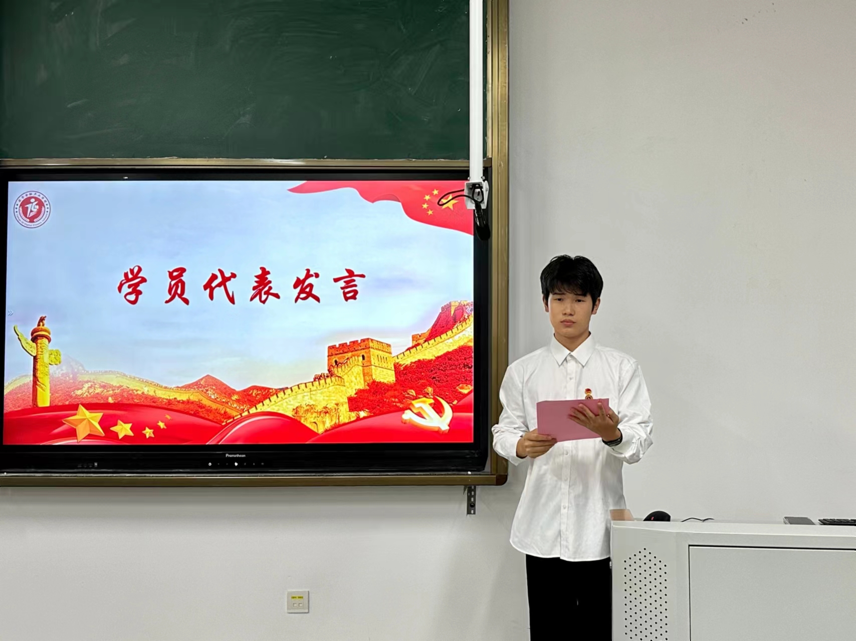 范凯捷同学表示作为新时代青年,应时刻牢记习近平总书记的嘱托,坚定不移听党话、跟党走,立志做不负时代、不负韶华、不负党和人民重托的新时代好青年。他号召大家在日常生活中要用中国共产党党员的标准来严格要求自己,牢记自己的职责和使命,不仅要在学业上下功夫,更要把学习到的理论知识结合到实际问题上,做到理论联系实际,知行合一。