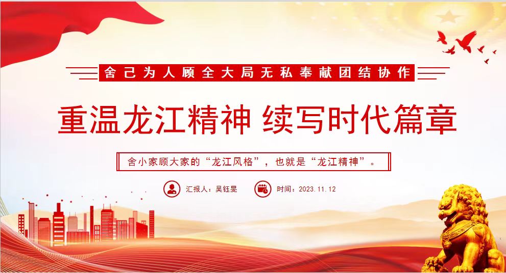 金心向党 · 传薪 | 党员微党课第八讲《重温龙江精神 续写时代篇章》