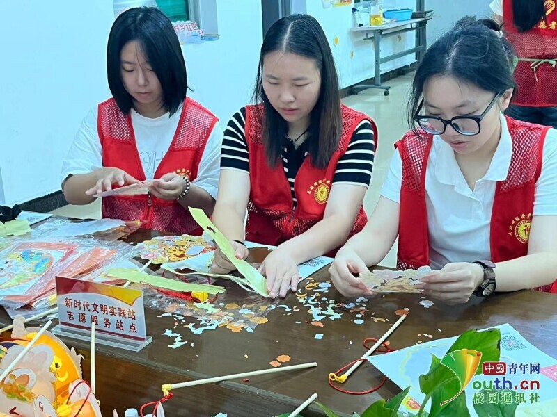 图为志愿者在仔细裁剪花灯。吕彬炜 供图