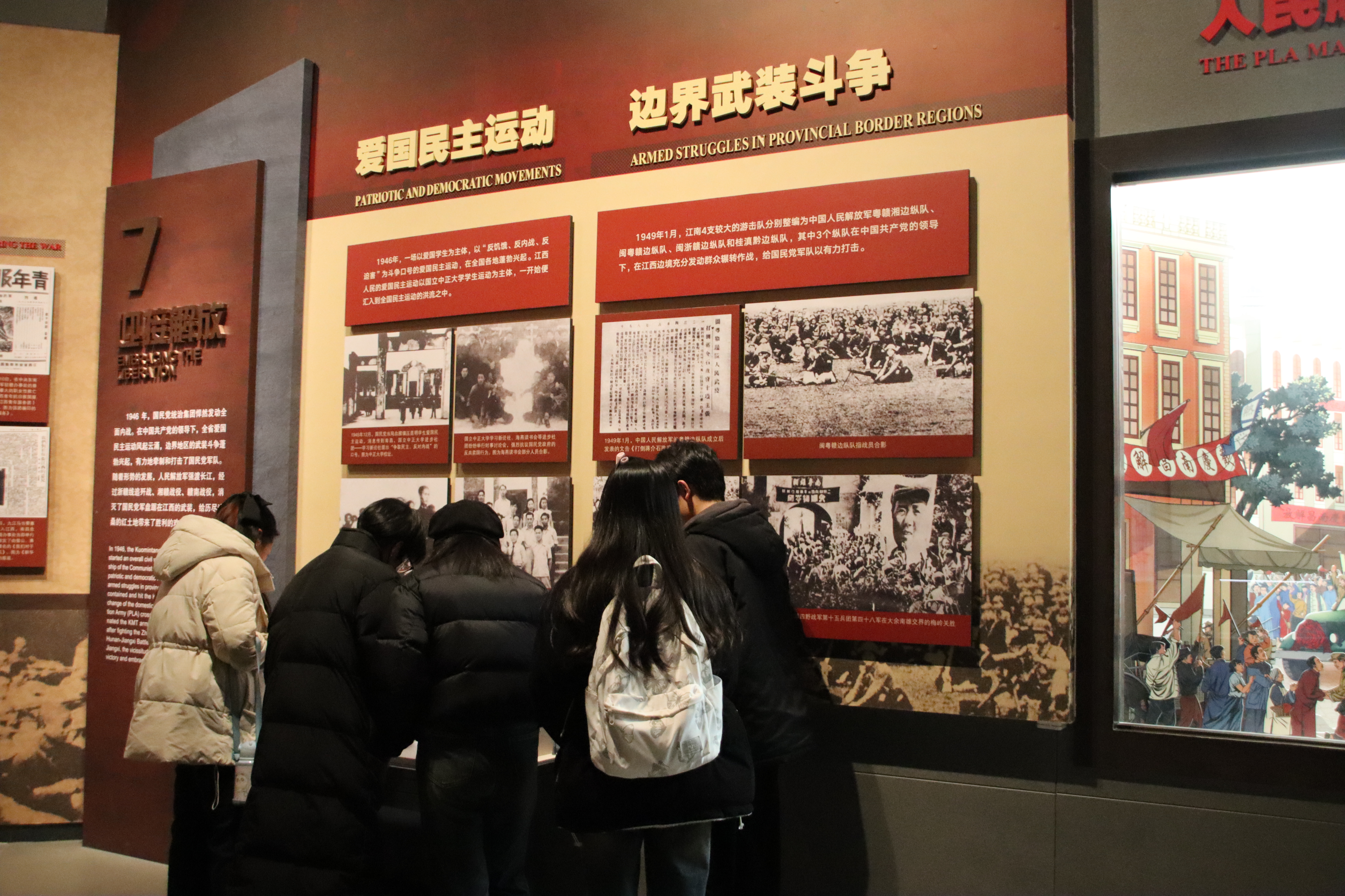 展厅内,安源路矿大罢工、南昌起义、秋收起义、井冈山斗争、抗日战争等一系列革命活动通过熠熠闪光的历史资料、文物展品,按中国革命历史的时间次序一一呈现在实践队员眼前。全景式地演绎新民主主义革命时期中国共产党领导的江西人民波澜壮阔的革命斗争,生动诠释红色革命历史孕育出来的井冈山精神、苏区精神和长征精神。