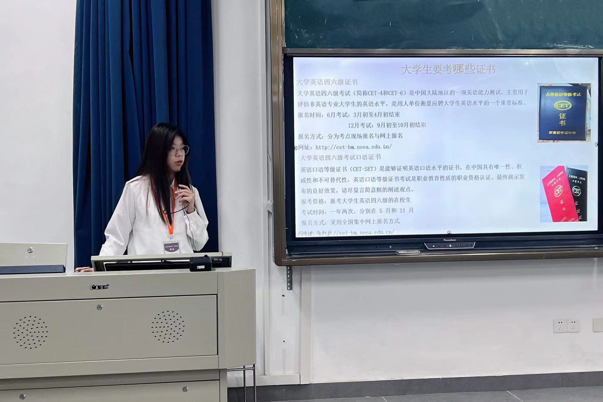 最后,学习部干事以英语四级和初级会计师证为例,讲述该如何去备考,还为同学们推荐考证的相关书籍以及网站,而后提醒同学们考证要结合自己的兴趣爱好、要与自己的专业背景相近、同时要充分预估考证难度、不要因为考证而耽误学习。