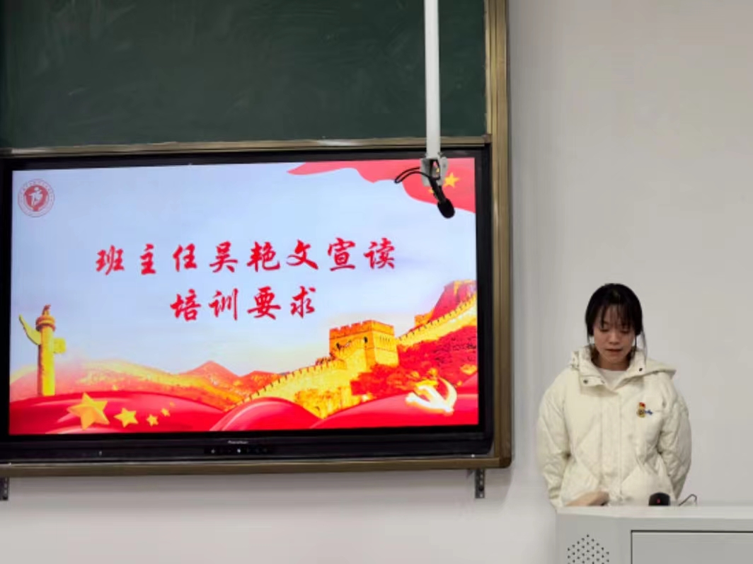 开班仪式上,吴艳文老师宣读对入党积极分子培训班的安排及要求。举办此次培训班的目的是使入党积极分子深刻理解党的性质、指导思想,进一步熟悉了解党员发展过程的有关具体要求,强调同学们在培训学习期间,要严格遵守学习纪律,做到不迟到,不早退,专心听讲,认真做笔记;要积极参加讨论、交流,坚持理论联系实际,做到学有所得,学以致用。