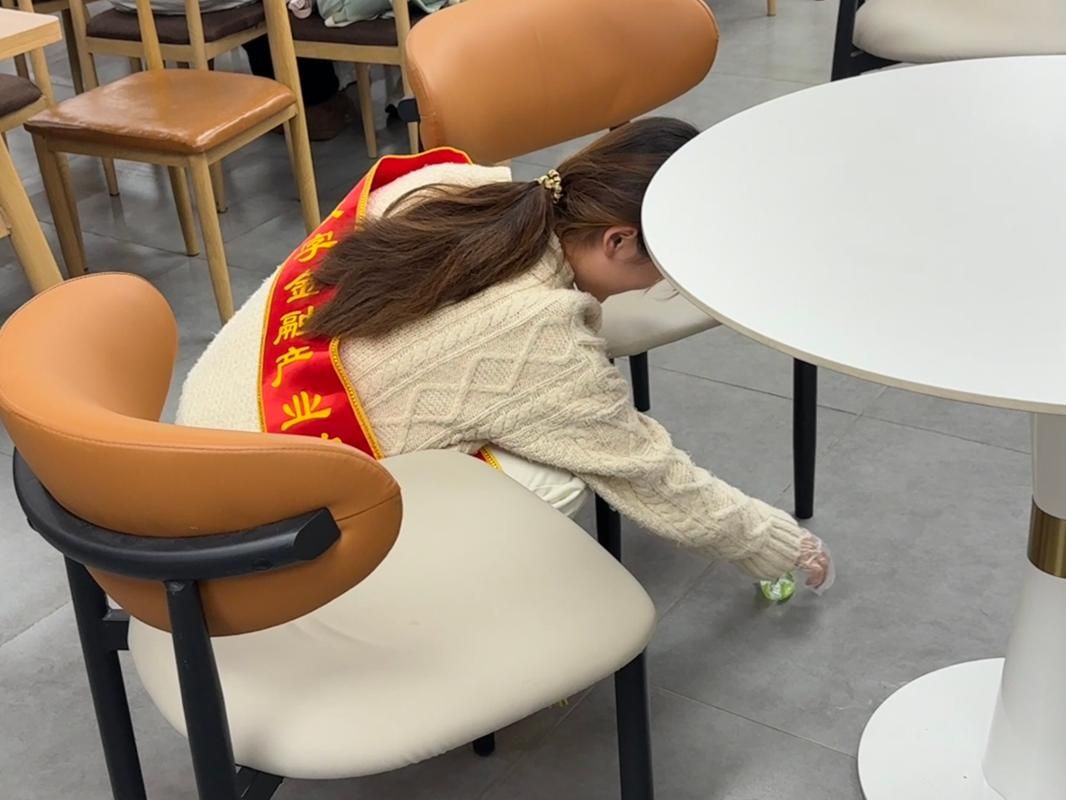 活动中,实践队员恪尽职守,在食堂各个重要区域倡导勤俭节约。餐盘回收点前,他们耐心劝导按需打餐、践行光盘,向剩饭剩菜的同学传递“粒粒皆辛苦”的深刻内涵,以常态化引导的方式让勤俭理念融入日常,推动“节约粮食”从倡议变成习惯。用餐结束时,实践队员们依旧坚守在餐具回收岗位,提醒同学们做好厨余垃圾的分类归置,将餐具整齐摆放到指定区域。他们始终以行动号召珍惜每一粒粮食,落实“光盘行动”,用平凡坚守凝聚起校园餐桌文明的磅礴力量。