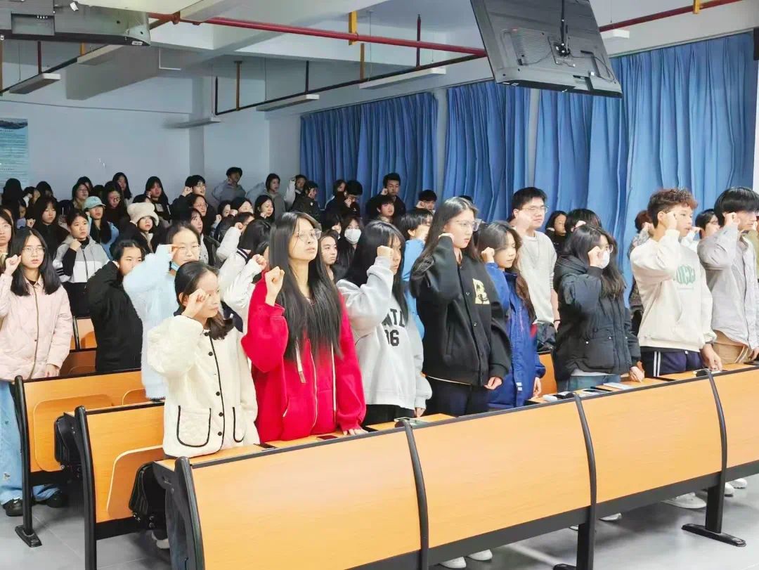 讲座尾声,全体同学庄严宣誓,承诺将自觉遵守考试纪律,坚决抵制作弊行为,以诚信态度对待每一场考试,用真实实力赢得认可,以优良品格收获尊重,携手维护公平公正的考试环境,让学风建设落地生根,让诚信精神融入青春血脉。