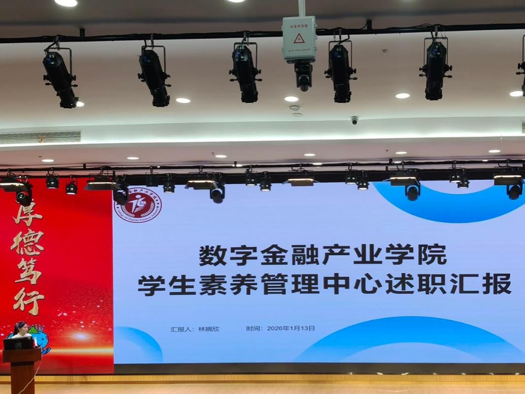 为持续锤炼学生干部组织能力、协作能力与攻坚能力,保障学生工作高效落地,以团的基层组织建设要求为导向,开展务实且形式新颖的育人活动,切实提升青年群体的担当意识和综合素养,为学院团学工作的长远发展筑牢新根基。2026年1月13日,数字金融产业学院团委在教学楼报告厅隆重召开2025-2026学年第一学期述职暨表彰大会。数字金融产业学院党总支副书记张玉梅,学院团委书记林建涛、全体思政辅导员出席会议,数字金融产业学院团委全体学生干部、干事及获奖代表参加。
