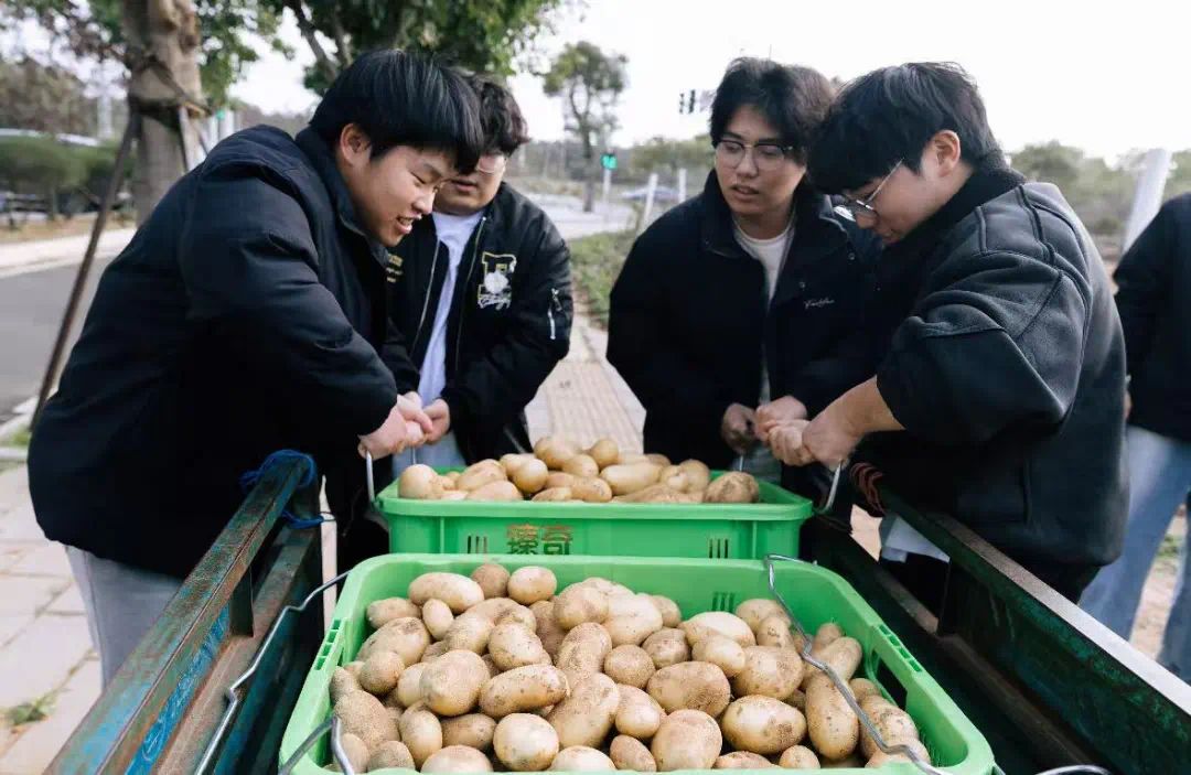 春日田间,泥土芬芳。在三院负责人的带领下,“趣耕”劳动教育联合志愿服务队的志愿者们奔赴田野,开启土豆丰收采摘。大家分工协作、干劲十足,从俯身刨土挖薯,到细心分拣装袋,再到接力搬运装车,每一个环节都有条不紊、毫不懈怠。从种植时的除草松土、施肥灌溉,到收获时的满载而归,志愿者们在亲手劳作中亲历耕耘的不易,在汗水中读懂劳动的价值,用双手收获最踏实的喜悦,让劳动精神在田间地头熠熠生辉。