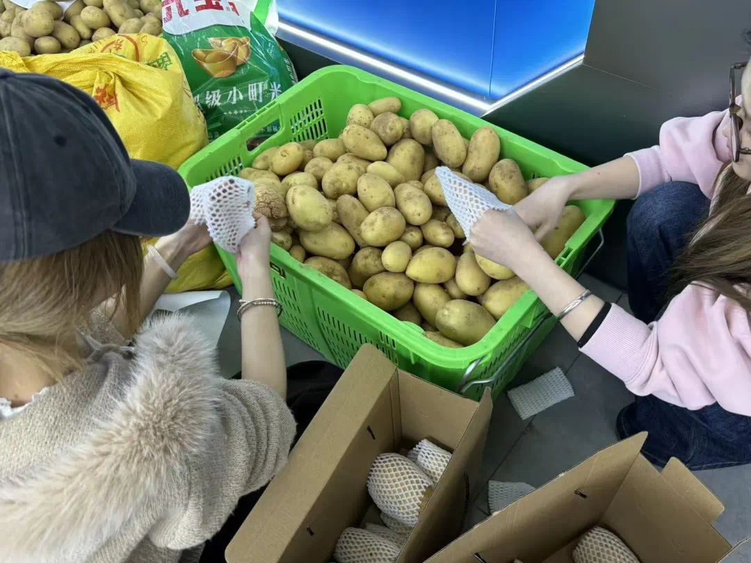 经过“趣耕”劳动教育联合志愿服务队干事们连日的分拣、打包,一颗颗饱满的土豆被精心分装成精美礼盒,送到各院每位老师手中。这份礼盒承载的不仅是新鲜的薯果,更是服务队近一年来躬耕劳作的丰硕成果。劳动的价值在此刻具象化。