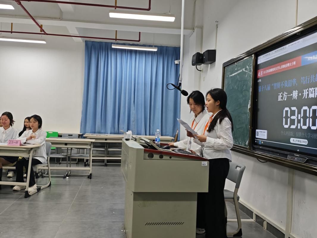 比赛现场,正反双方围绕辩题展开激烈交锋,针锋相对;立论环节,双方辩手以严谨逻辑与流畅表达,清晰搭建起完整的论证框架。攻辩阶段,双方言辞犀利、应答机敏,凭借扎实论据坚守自身立场,精准直击对方要害。