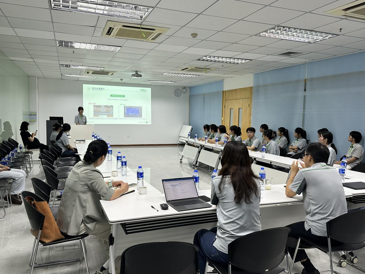 参加本次实习总结汇报的学生有:吴梦萍、许乐瑶、骆欣玲、杨本耀、陈文静、兰清清、甘银桂、罗丽萍、兰小芳、林鑫娜、罗美琳、吴紫怡、朱启明13位同学。同学们就实习期间所取得的成果和经验向公司领导、师傅和老师们进行了展示。他们详细介绍了自己参与的项目、解决的问题以及采用的创新方法。通过在利莱森玛的实习,同学们养成了独立思考的习惯,能主动沟通、积极创新,同学们深入学习“3Q6S”的管理模式,做一名举止文明、有礼貌,受人欢迎、有修养的员工,共同打造拥有好员工、生产好产品的好公司。通过CI(持续改善)项目的跟踪学习,同学们还学会通过PDCA的方式,提出改善建议,将改善建议落地实施并检验效果。