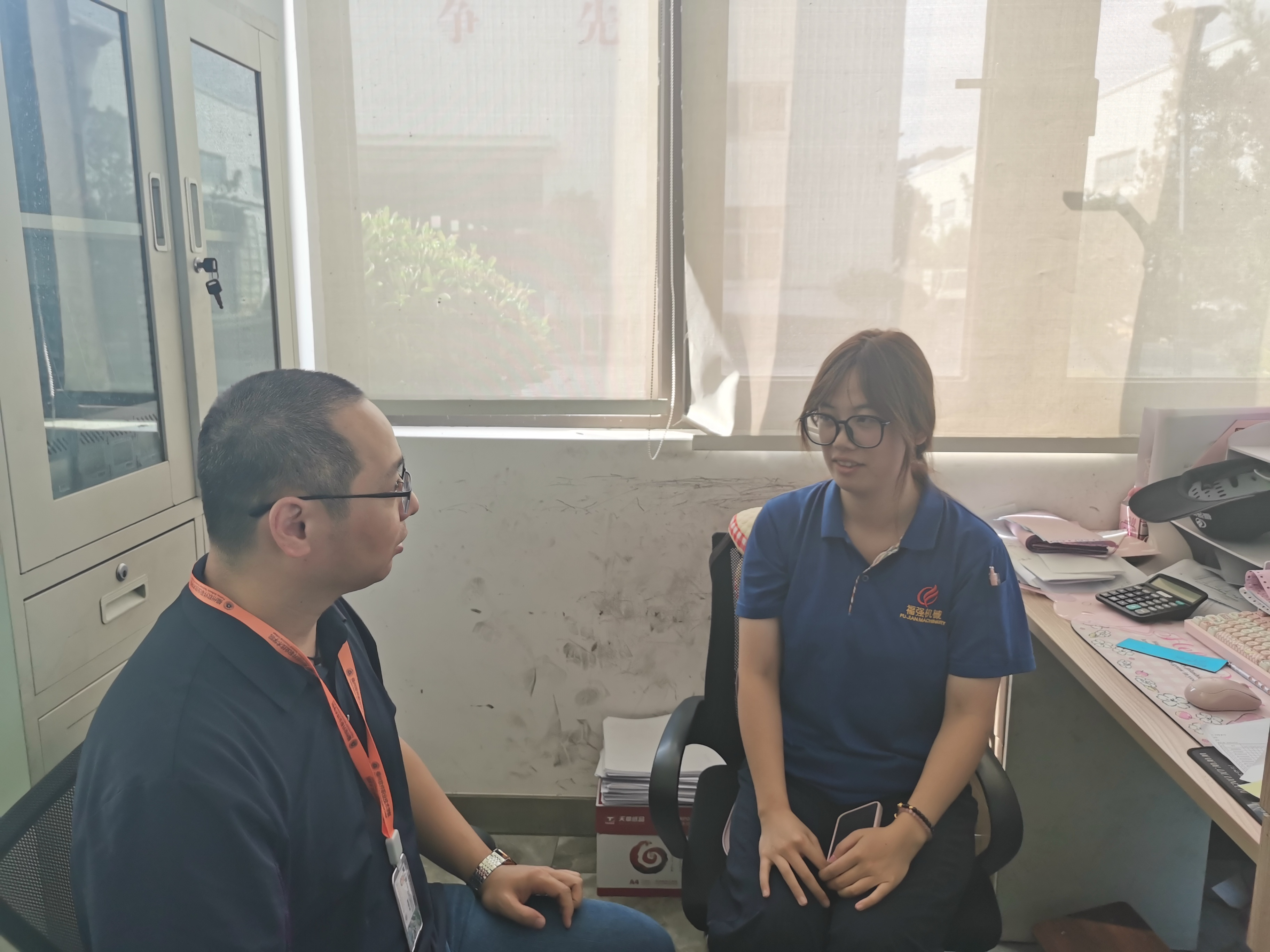10月15日下午,福州软件职业技术学院金融科技应用教研室主任林晓峰老师实地走访实习企业福强机械模具有限公司,走访了解23级金融科技应用专业实习生廖子星同学,深入了解其工作内容与实习进展,并给予专业指导与鼓励。