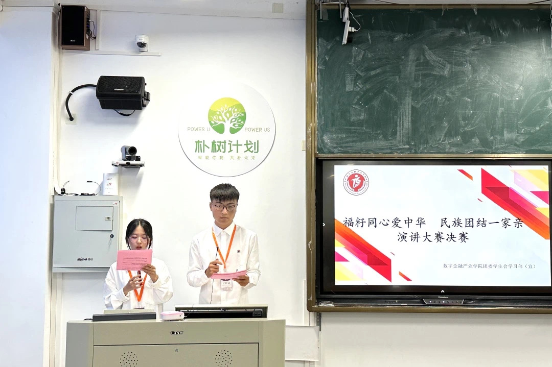 为深入贯彻落实中央和省委民族工作会议精神,坚持以铸牢中华共同意识为主线,促进各民族交往交流交融,数字金融产业学院团委学生会学习部响应学校号召,于11月7日在教学楼A506举行“福籽同心爱中华,民族团结一家亲”演讲比赛。