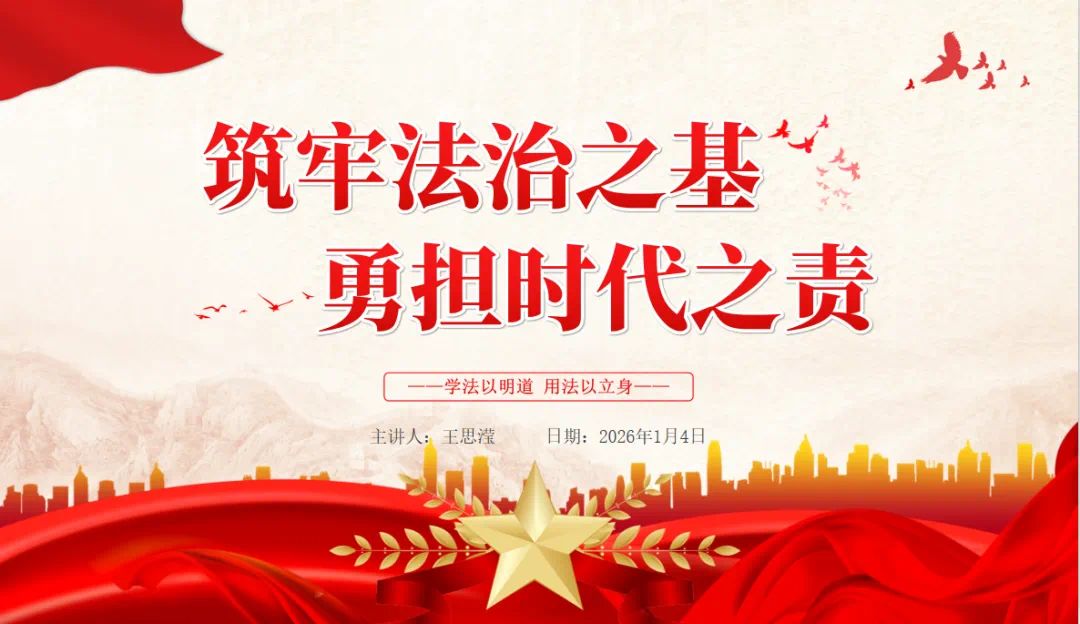 为引领青年学子深刻理解全面依法治国的重大意义,把握社会主义法治建设的核心要义与实践路径。2026年1月4日,数字金融产业学院学生党支部组织开展支部党员微党课第十七讲——《筑牢法治之基,勇担时代之责》。本次微党课采用线上线下相结合的形式,由学生党员王思滢同志分享,全体学生党员及入党积极分子参与学习。