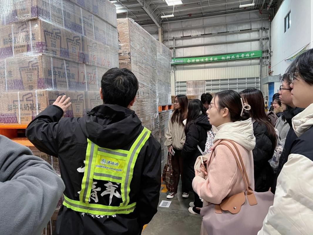 活动期间,现代物流管理专业教研室主任钱叶霞与福建省人力资源发展集团有限公司林憬耀及随行教职工,带领2021级(五年专)现代物流管理专业学生走进蜜雪冰城仓库,在标准化、精益化、智能化交织的作业现场,系统体验从门店下单、仓库接单分拣、派单运输到门店收货的全链条物流运作,亲身领略这家连锁饮品龙头支撑全国万余家门店高效运转的供应链实践。