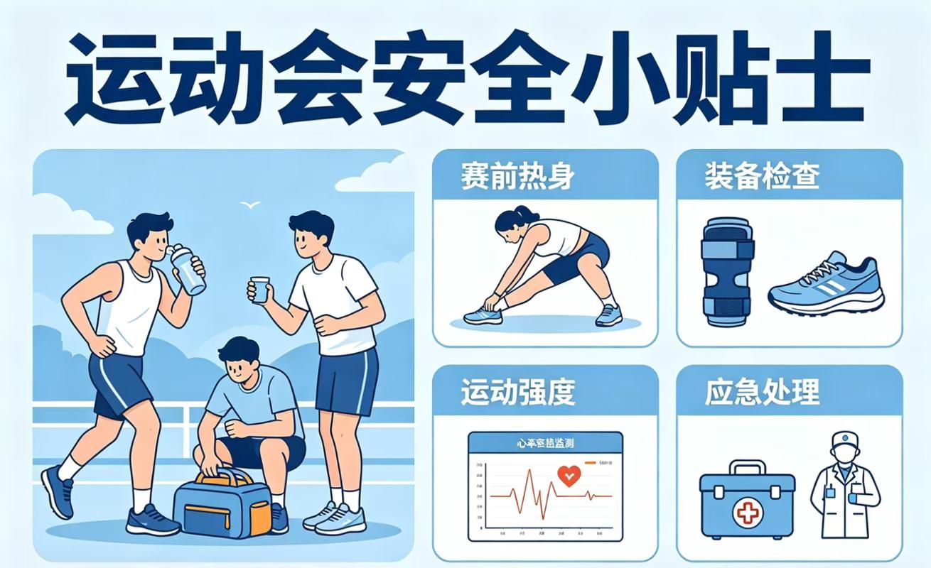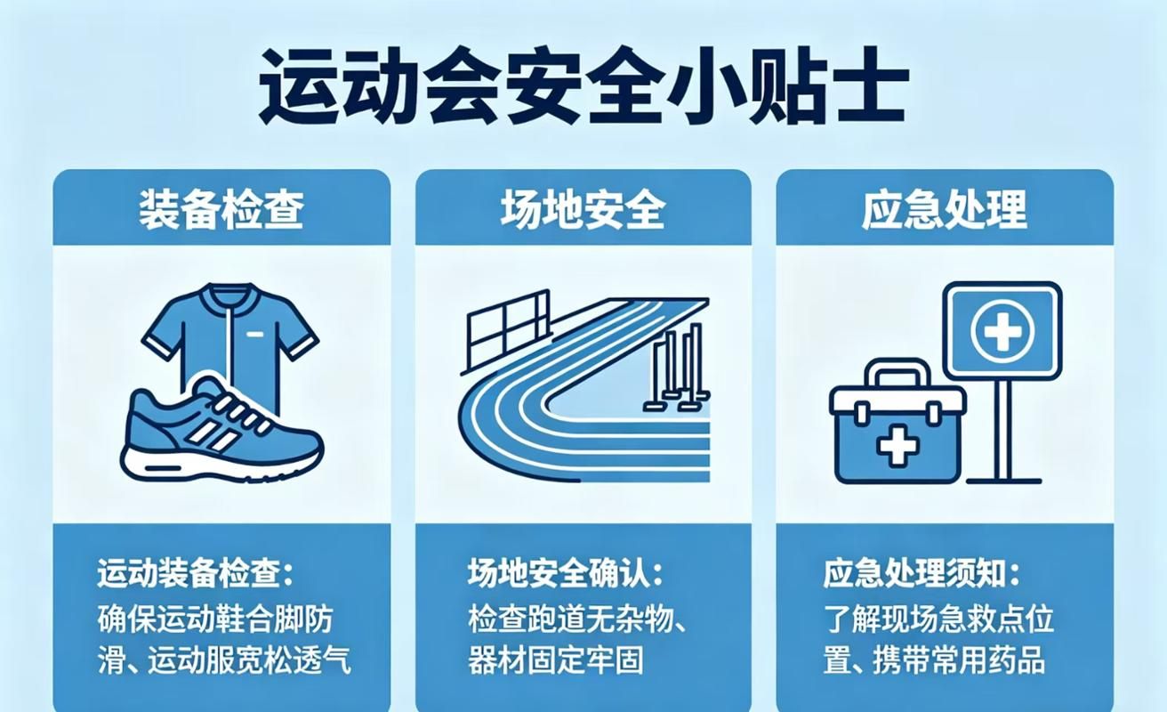 比赛前,请提前做好热身运动,活动手腕、脚踝、腰腹等关节部位,避免运动拉伤;尽量穿着宽松舒适、适合运动的衣物和防滑运动鞋,不佩戴尖锐饰品、不携带手机、钥匙等硬物,防止磕碰受伤。
