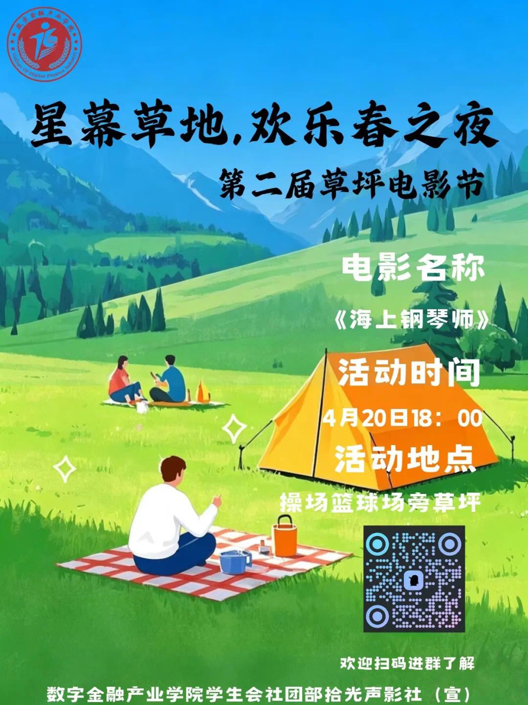 为丰富校园文化生活,缓解学习压力,营造轻松愉悦的春日氛围,在春夜的星空下、草地上享受电影艺术的魅力。2026年4月20日,数字金融产业学院学生会社团部拾光声影社拟在操场篮球场旁草坪开展“星幕草地,欢乐春之夜”第二届草坪电影节系列活动。