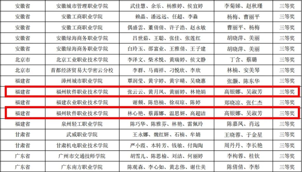 自报名备赛以来,学院高度重视,从组织、准备、训练,始终以学生为主体,在高银娜、吴淑芳老师的指导下,由张云云、黄月凤、黄丽婷、林艳娟、林心艳、蔡露娜、温思妍、高超洁8名同学组成的两支队伍在比赛中展现出了良好的专业技能水平,荣获该赛项国内赛三等奖。