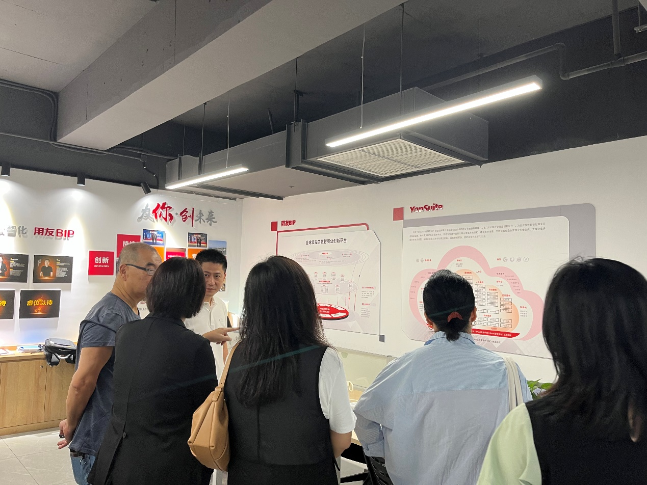 用友集团热情接待了刘东山院长一行,介绍了企业发展历程,经营业务和业绩成果及未来发展方向,参观了企业文化墙、荣誉墙和办公区,详细了解企业业务规模和企业文化。