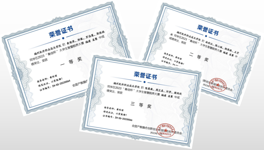 近日,2023年第九届“衡信杯”大学生智慧税务大赛圆满落幕。我院三支代表队分别获得了福建赛区的一、二、三等奖,其中有两支队伍进入国赛,并在总决赛中取得了良好的成绩。