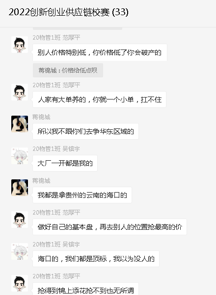 比赛来到了第六天进企业运营方案的制定环节,参赛团队开始根据昨天分析的企业增效降本的思路,开始设计自己的营运方案。企业如何设厂,设多大的厂,工厂如何选址,选址应该靠近市场端还是供应商端。对此游筱婷老师提示到,工厂的建设是战略性的策略,不能只考虑一个方面的利益,而要全盘考虑。同学们恍然大悟,从战略层面设计企业运营方向。关于客户定位,有的同学们认为客户的单子大,就要争取,就在客户边上设厂,靠近热度最高的地点设厂就能有利于降低成本。彭静老师就此提示同学们,你能看到的,别人也能看到,这是基本的商业逻辑,如何避免扎堆抢单,在资金有限的情况下如何避免进入打价格战的怪圈,同学们需要的是情报信息的收集和分析的能力,一定要知彼知己,才能百战百胜。比赛进入到运营阶段,同学们依旧干劲十足,争取取得优异的成绩。