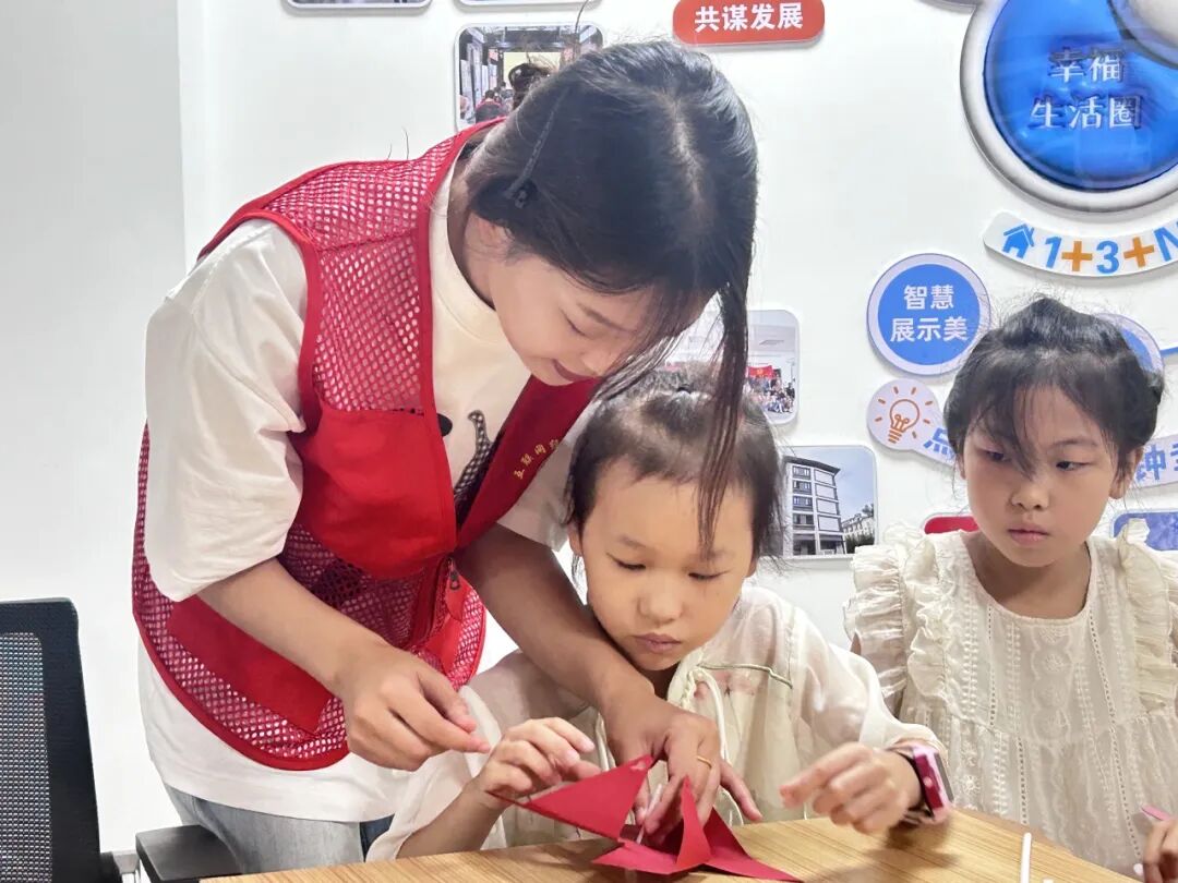 随后,志愿者化身传统文化的传播者,手把手教小朋友们绘制漆扇,助其将古典美学融入创作;还带领大家组装色彩明艳的红色风车,同步讲解风车转动原理,让小朋友在动手过程中体悟匠心、感受传统乐趣,使劳动精神与节日温情在沉浸式体验中延续,为双节增添传承意趣。