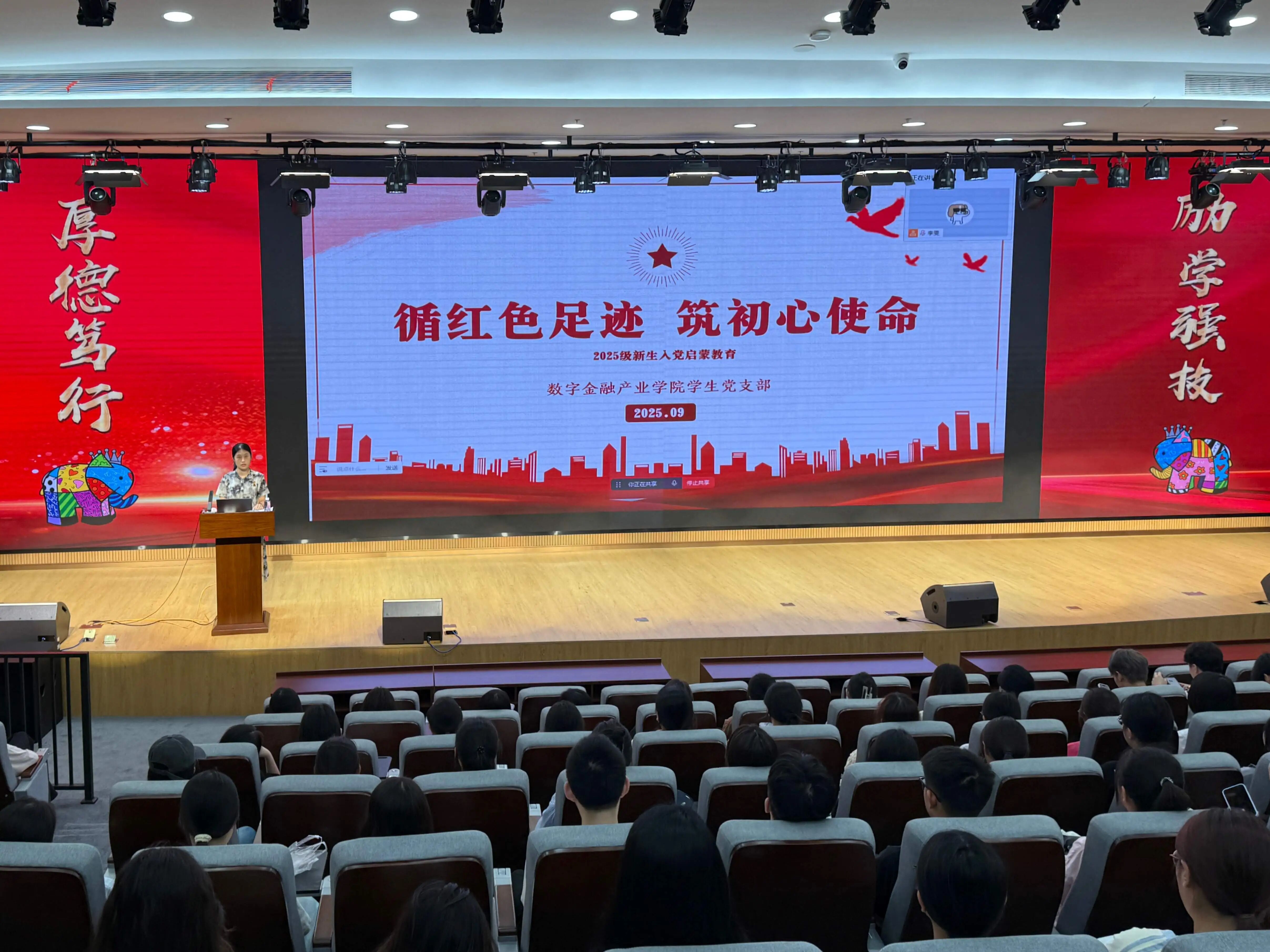 为强化当代青年思想政治引领,筑牢理想信念基石,引导青年学子树立正确的入党动机,以信仰之光点亮人生成长之路。9月10日,数字金融产业学院学生党支部开展2025级新生入党启蒙教育专题讲座。本次讲座采取线上线下相结合的方式,由数字金融产业学院思政辅导员李雯主讲,2025级全体新生参会。