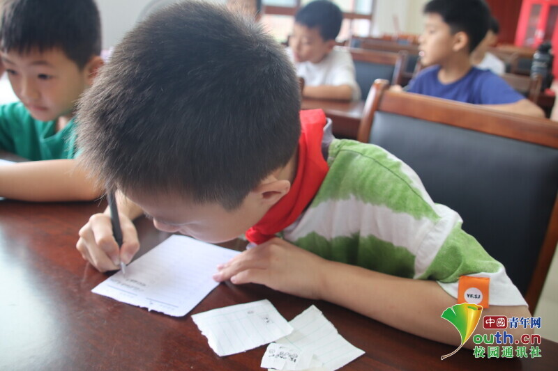 图为小朋友正在写下自己的情绪清单。胡陈龙 供图