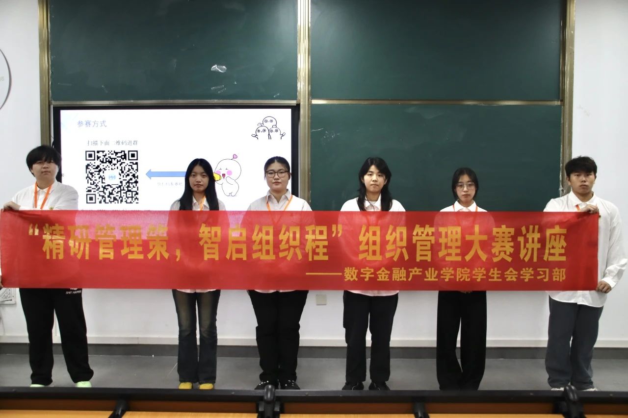 为进一步推动高校人才培养高质量发展,提升学生组织管理能力与综合能力,应对数字经济时代组织管理机遇与挑战并存的新格局,促进理论学习与赛事实践的深度融合。5月29日,数字金融产业学院学生会学习部举办的“精研管理策,智启组织程”第六届大学生组织管理能力大赛讲座在教学楼A507开展。