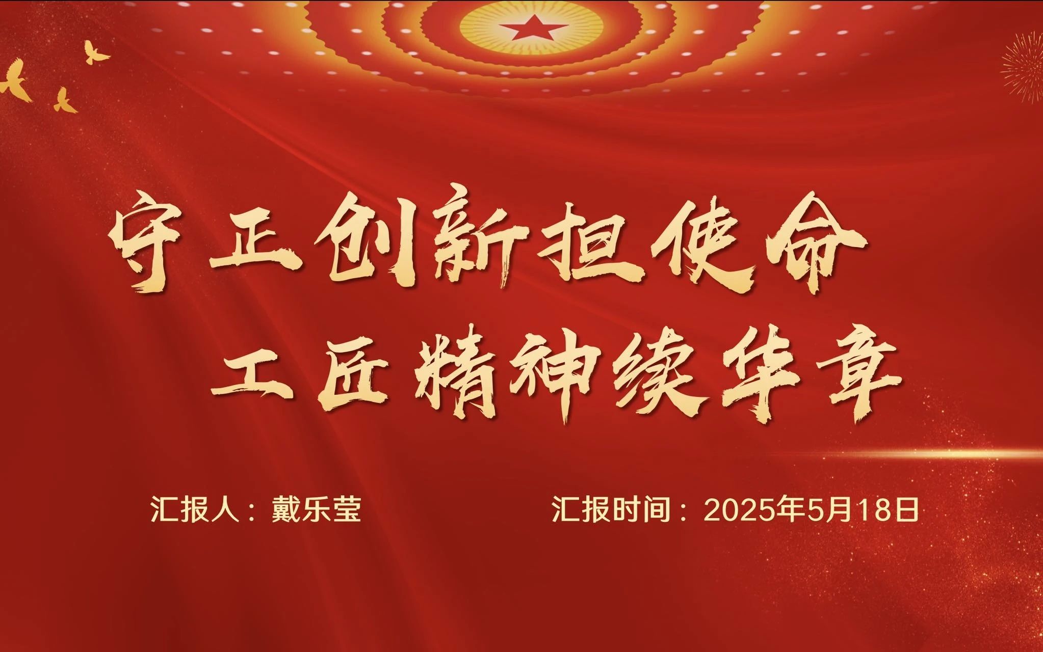最后,戴乐莹同志表示,作为新时代的青年要深刻领悟工匠精神内涵,在学习、工作和生活中守正创新、秉持匠心,以实际行动践行党的初心使命,主动将个人事业融入国家发展大局,展现新时代党员的责任担当,为实现中华民族伟大复兴贡献力量。