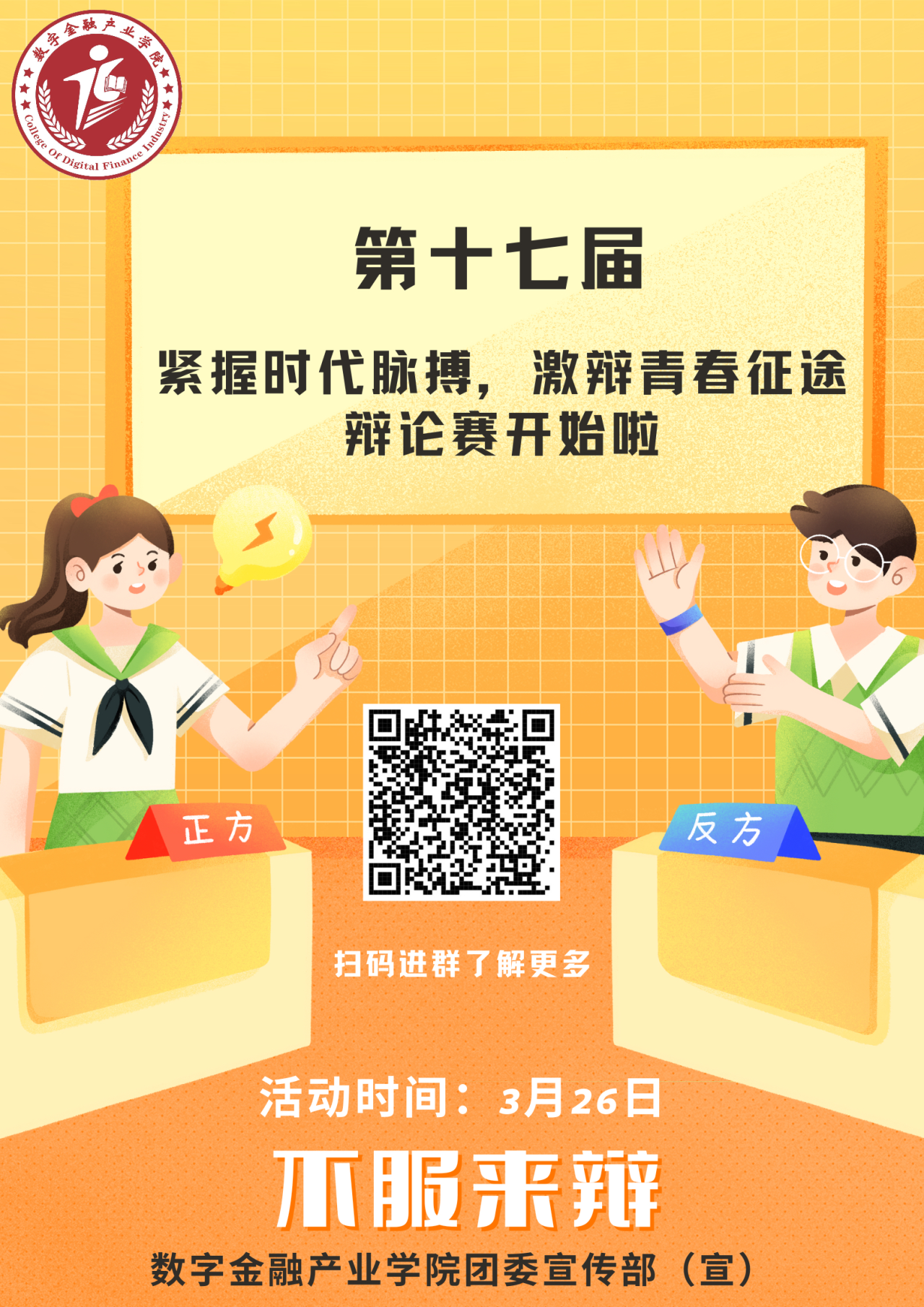 2.半决赛:通过初赛的16支队伍(各学院2支)于指定时间抽签决定辩题和比赛对手,决出4支队伍进入决赛。