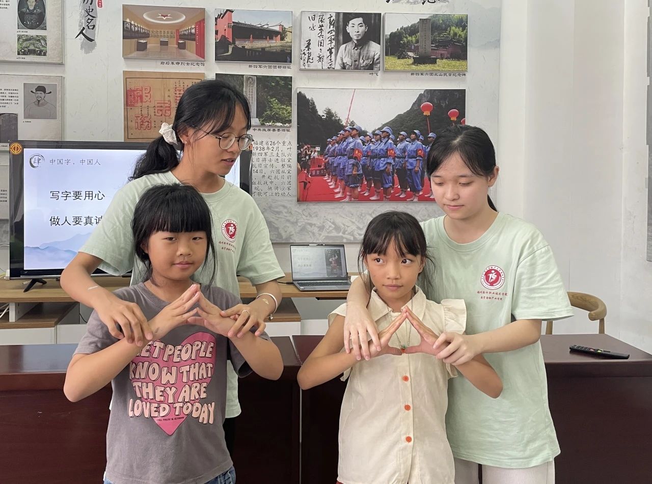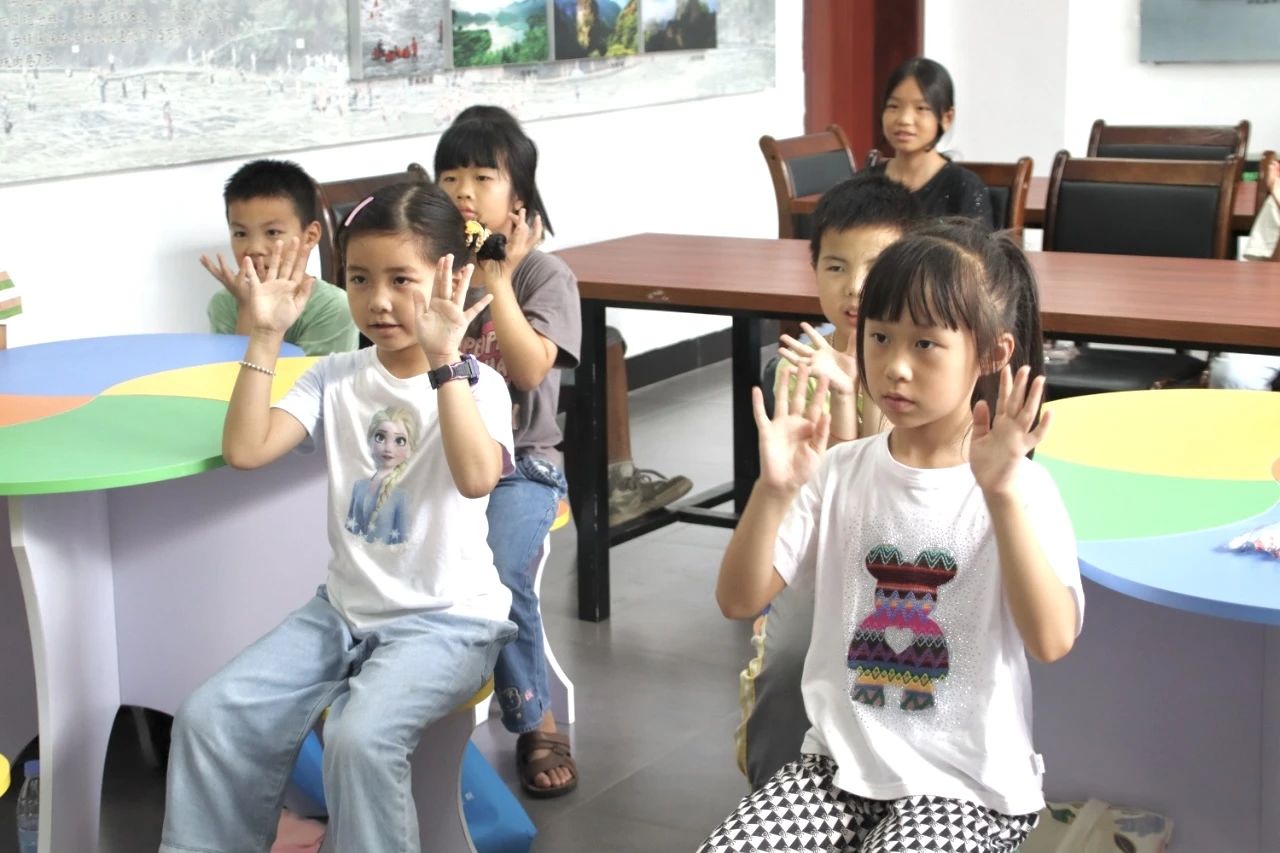 随后,实践队员们将国学经典篇目与手势舞相结合,巧妙地将“经典”融入手势舞教学之中,打造传承弘扬中华优秀传统文化新模式。当《春晓》的旋律响起,小朋友们一边舞动双手,一边轻声诵读古诗,让每一个手势都与词义紧密相连,生动形象地展现出诗词的意境与美感。当《中国字 中国人》的篇章激昂响起,小朋友们的手势随着歌词的流转变得强劲有力,比划着“山”“水”的轮廓,感受着汉字背后的山川壮丽与人文情怀。一首首耳熟能详的古诗“动”了起来,并随着旋律和舞姿流淌进了小朋友们的心中。
