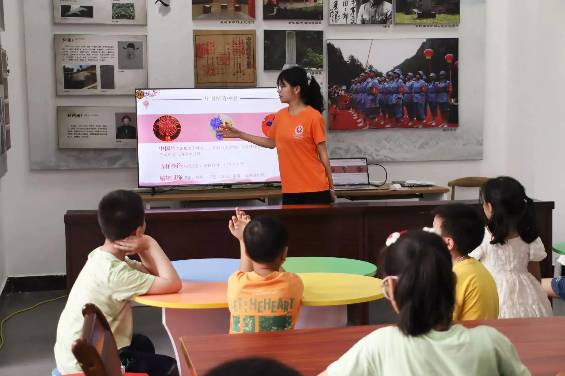 随后,实践队员化身为巧手匠人,分组指导小朋友们亲手编织中国结,“圈环、穿绳、缠绕、打结、打穗”的传统工艺手法在他们手中翻飞,一拉一扯,一个精美的中国结便跃然指尖,小朋友们沉浸其中不亦乐乎,感知着中国结编织艺术的悠久历史和独特魅力。