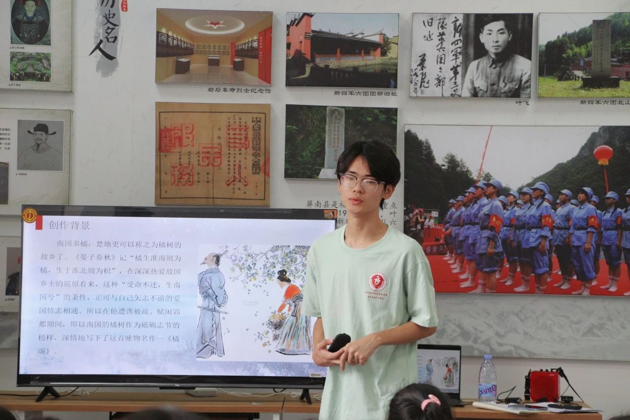 历史书装不下屈原先生波澜壮阔的一生,通过实践队员精彩表演,把文字变成形象,仿佛带小朋友穿越到战国诸侯争霸群雄逐鹿的时代,一同见证屈原何谓“深固难徙,更壹志兮”的浓厚爱国情怀,感悟《橘颂》背后的故事。