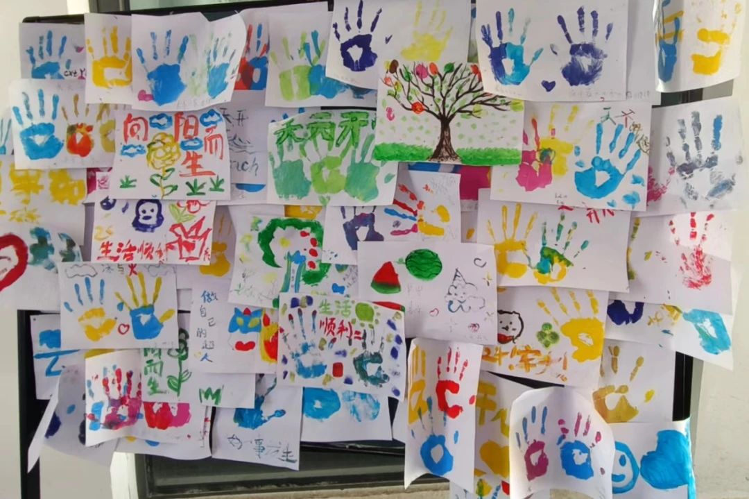 心手相连,共绘美好画卷。掌印的纹路承载青春与梦想,重重叠叠的手印,展现同学们互帮互助,共筑和谐宿舍氛围的决心;笔下的精句烙印希望与力量,彰显同学们青春的风采,共同构建出一副积极向上的校园画卷。