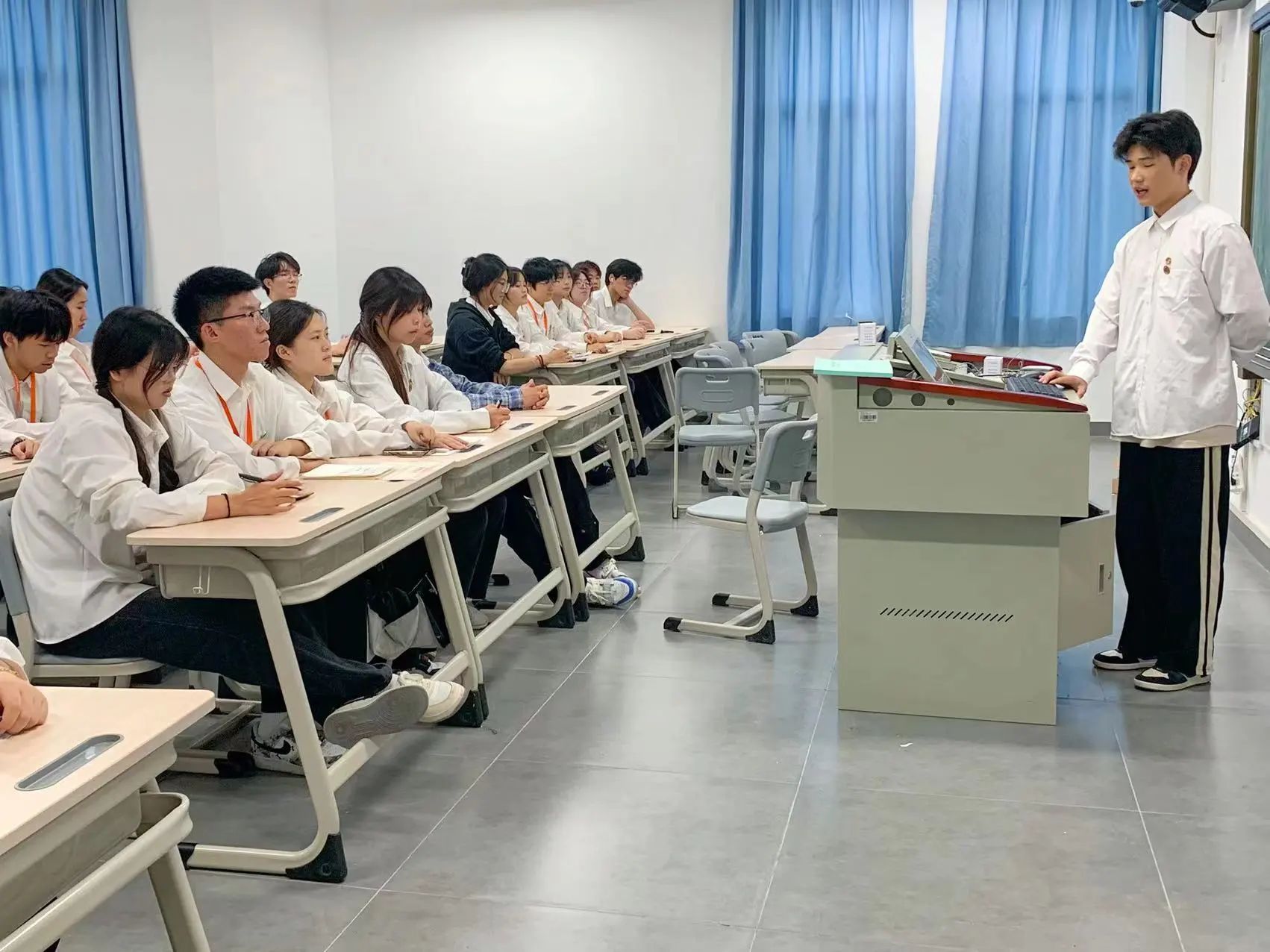 最后,在现场互动环节,学生骨干踊跃表达自己的学习感想。范凯捷同学领学了习近平总书记对新时代青年的寄语,并谈到当代青年怎样面对时代大任,他表示青年人应该树立正确的世界观、人生观和价值观,将个人理想与国家发展紧密结合起来,积极学习新知识、新技能,不断提升自己的综合素质和竞争力。此外,青年人还应该注重实践锻炼,志愿服务等活动,增强自己的社会责任感和使命感。范凯捷同学号召大家持续关注个人专业相关领域创新发展动态,引导学生骨干感受使命召唤,唤醒使命意识。