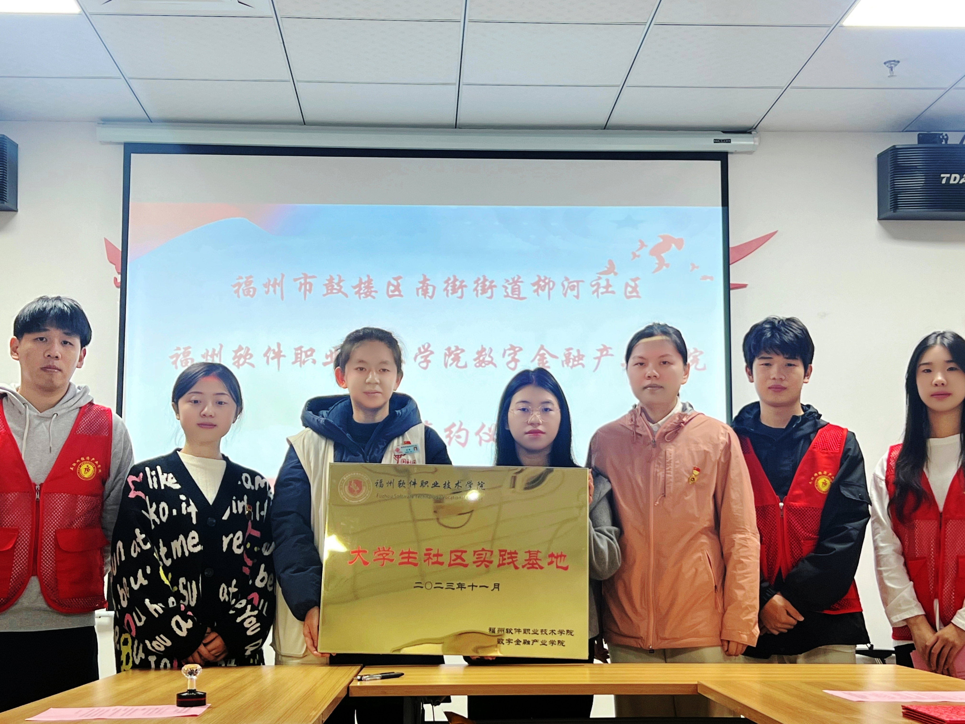 数字金融产业学院党总支副书记张玉梅与福州市鼓楼区南街街道柳河社区党委书记林莺签订了《大学生社区实践基地共建协议书》并共同为大学生社区实践基地授牌,未来双方将不断加强交流学习,构建资源共享、双向促进的新格局,进一步推动学院实践发展新模式。